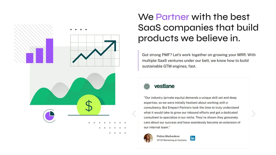 Это консалтинговая компания, специализирующаяся на поддержке роста SaaS-компаний, предлагая медийные публикации и помощь в выводе продуктов на рынок с акцентом на устойчивое развитие.