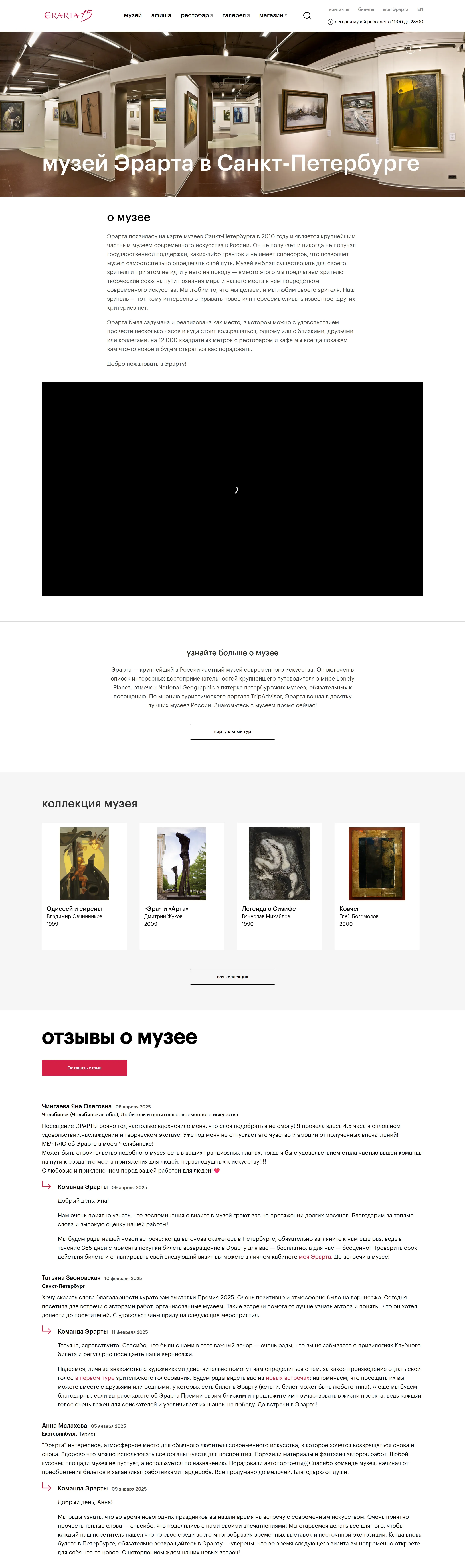 Крупнейший частный музей современного искусства в России, расположенный в Санкт-Петербурге, представляет российское современное искусство на 5 этажах и предлагает 40 новых выставок в год.