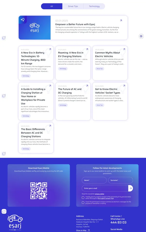 Eşarj является первым оператором сети зарядных станций для электромобилей в Турции, предлагая.fast и надёжную зарядку благодаря сети из более чем 2500 сокетов. Бренд также акцентирует внимание на использовании возобновляемых источников энергии для минимизации воздействия на окружающую среду.