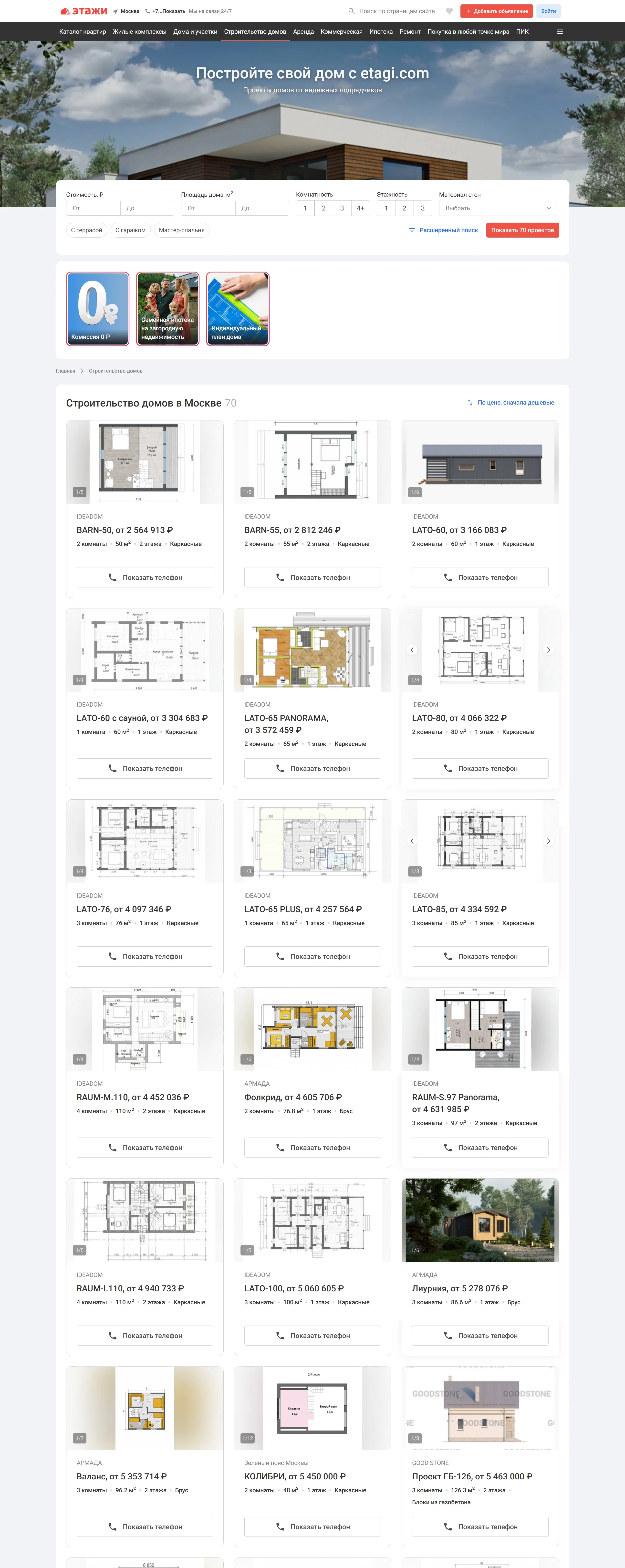 Секция «Товары» с сайта https://msk.etagi.com/, тематика — Агентство , Недвижимость, цвета — Белый, Серый, стиль — Корпоративный, типографика — Без засечек