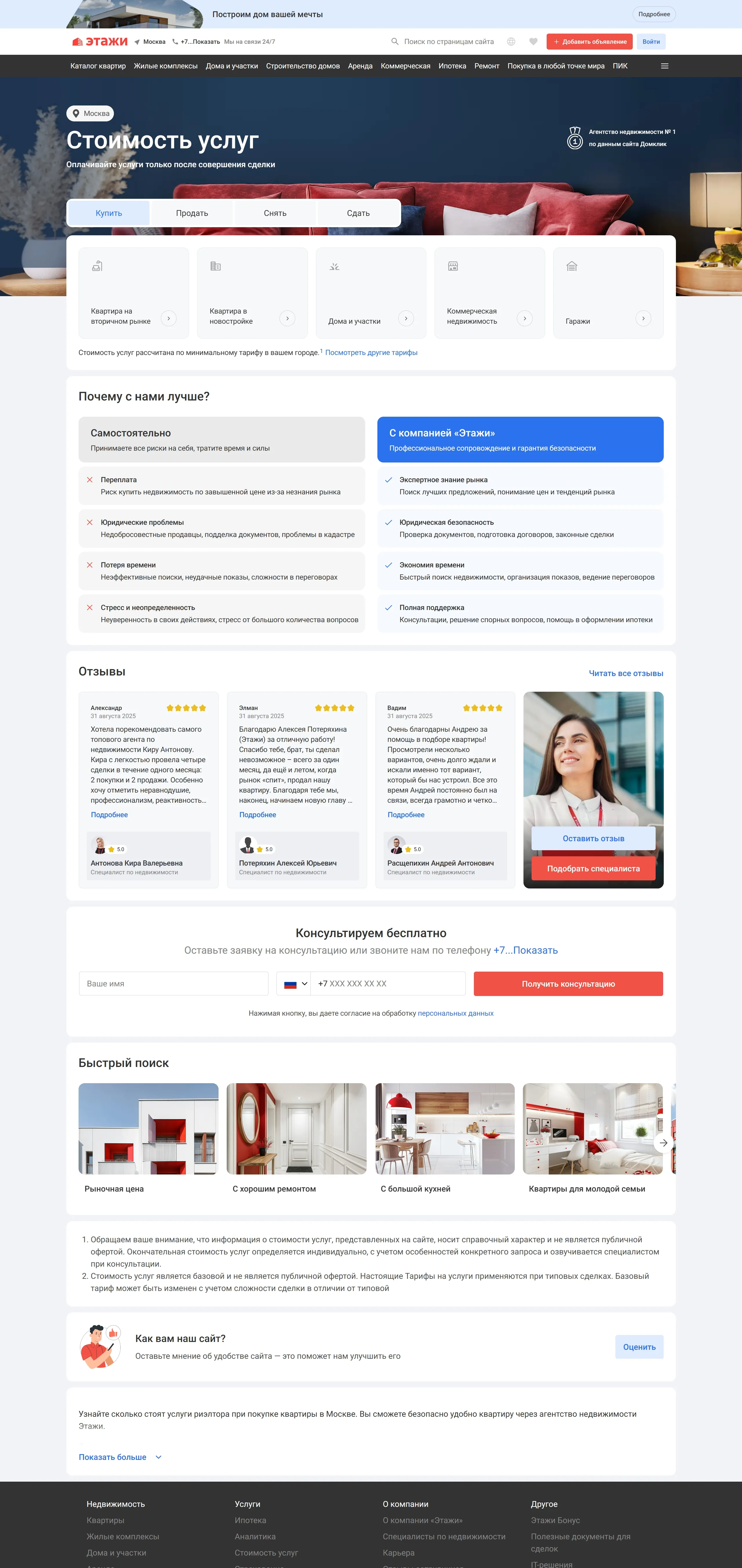 Секция «Услуги» с сайта https://msk.etagi.com/, тематика — Агентство , Недвижимость, цвета — Белый, стиль — Корпоративный, Минимализм, типографика — Без засечек