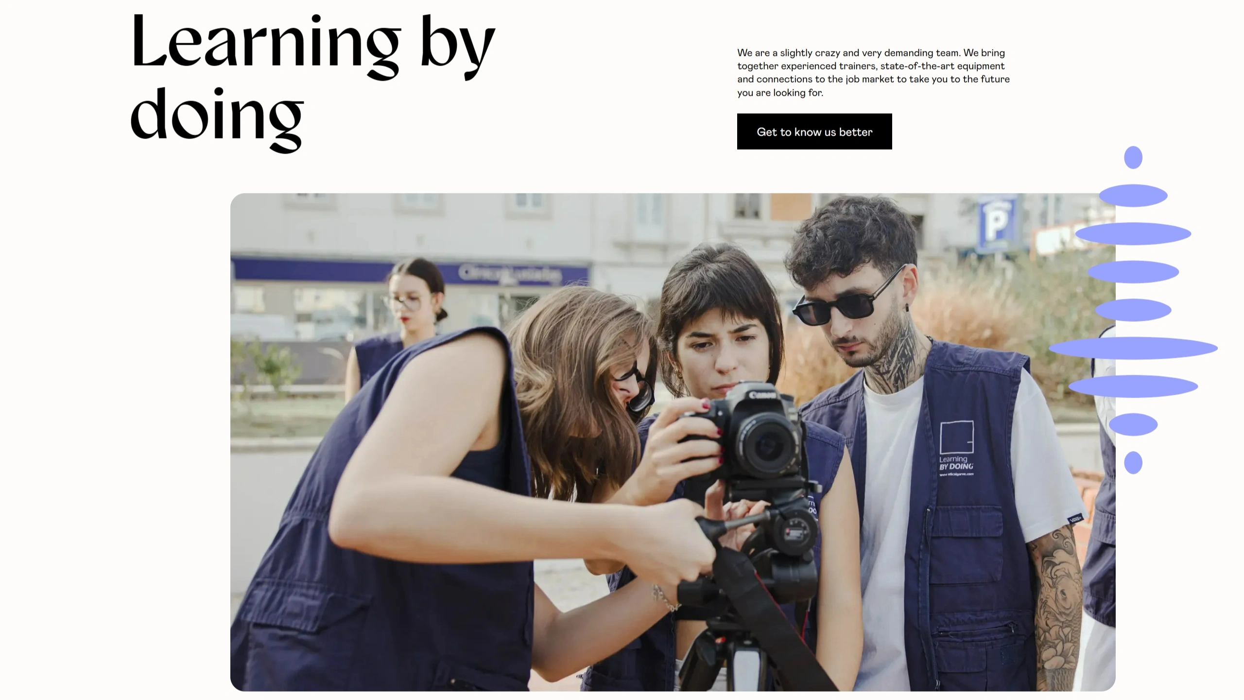 Секция «О компании» с сайта https://www.eticalgarve.com/en/, тематика — Образование, цвета — Белый, Черный, Серый, стиль — Минимализм, типографика — С засечками, Декоративные