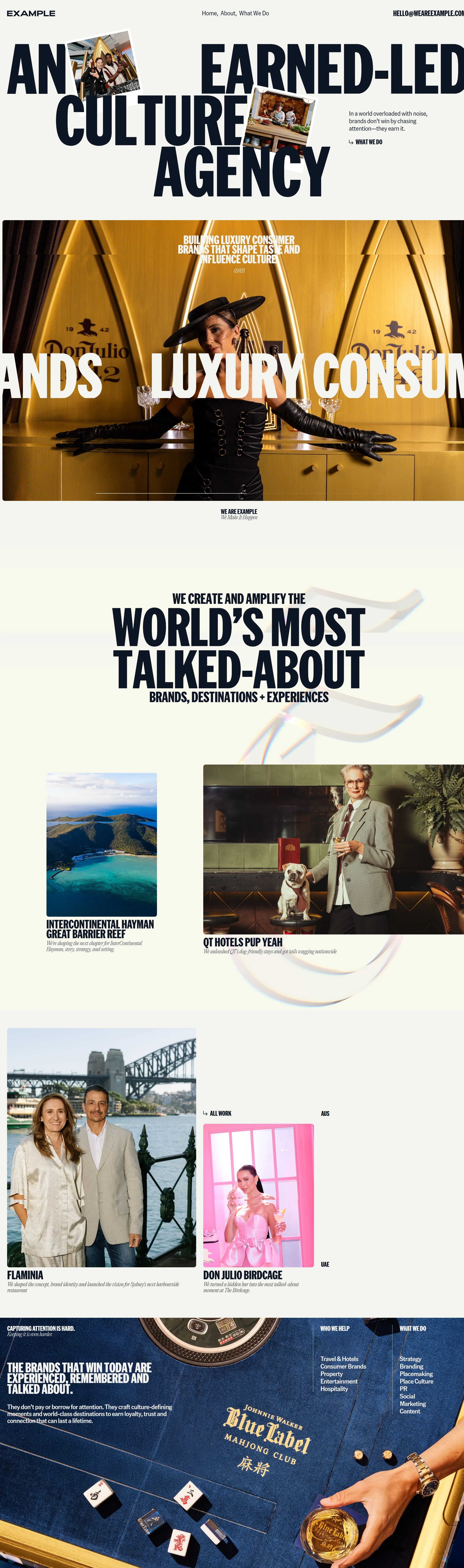 Example is Australia's leading PR, placemaking, and hospitality marketing agency, creating and amplifying world's most talked-about brands, destinations and experiences.
