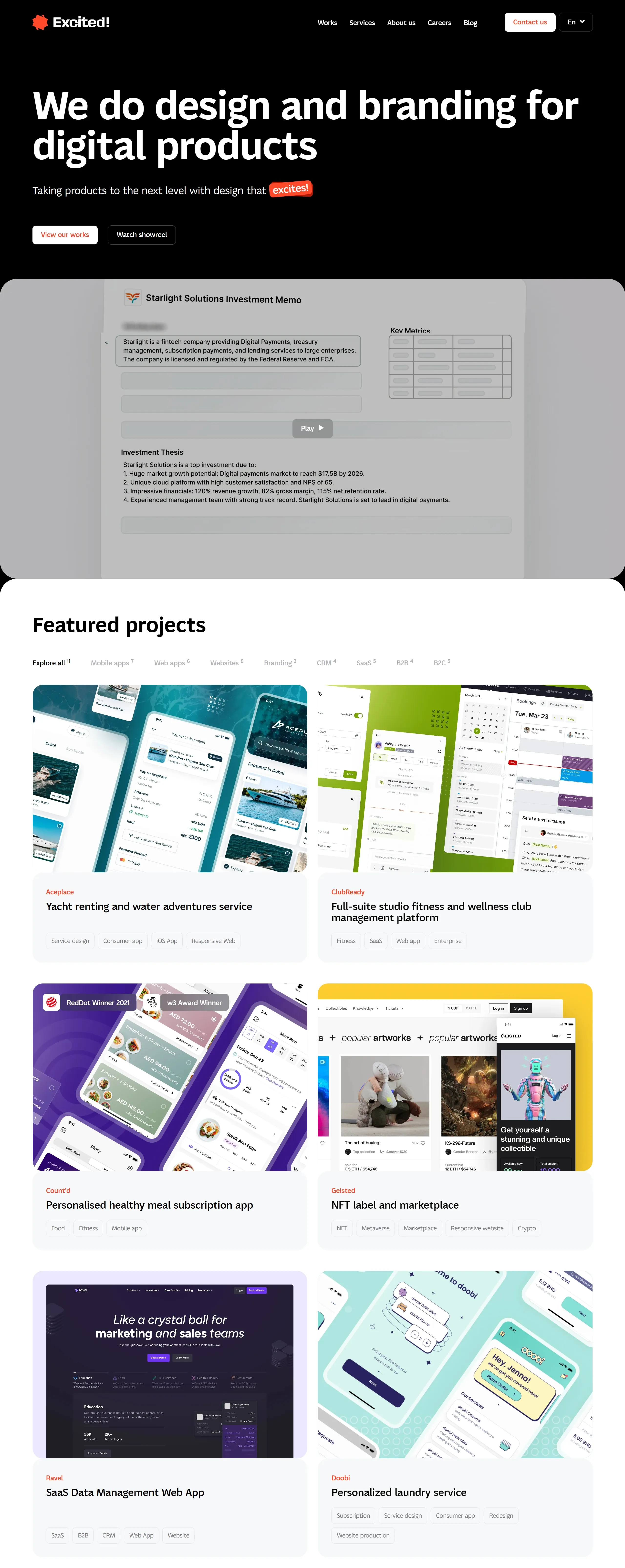 Компания занимается дизайном цифровых продуктов и пользовательских опытов для компаний и стартапов по всему миру, включая веб-сайты, SaaS, мобильные приложения и системы дизайна.