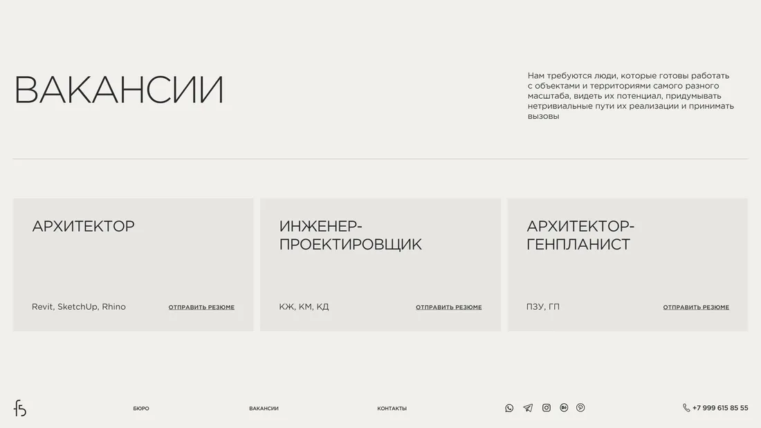 Архитектурное бюро, занимающееся созданием современной архитектуры и общественных пространств, которые являются едиными живыми системами, активно меняющимися и трансформирующимися.