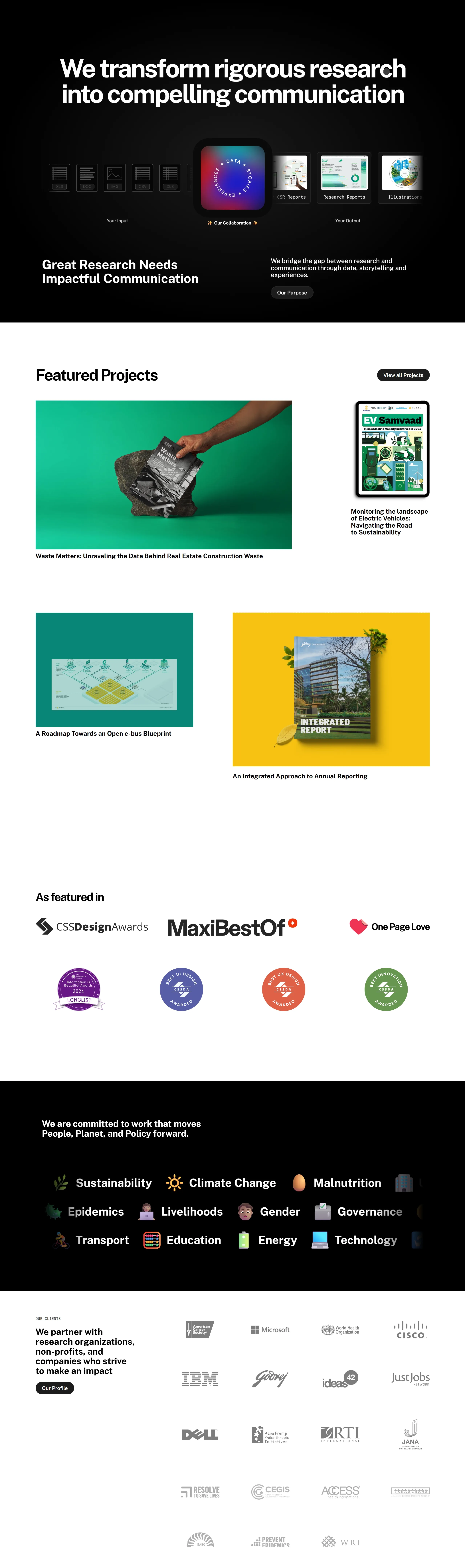 Компания помогает преобразовать строгие научные исследования в привлекательное общение, используя данные, истории и опыт, создавая эффективные коммуникационные решения.