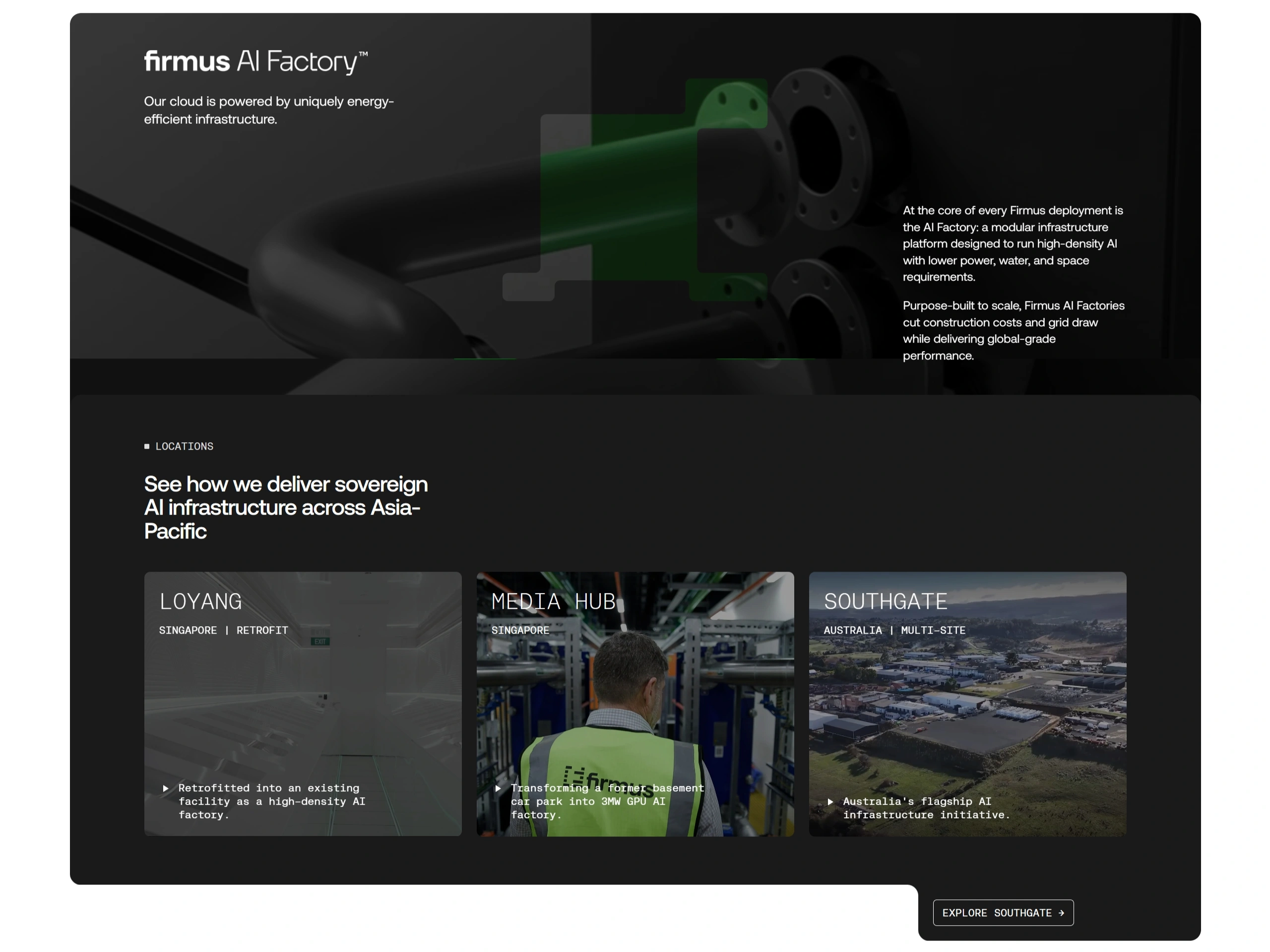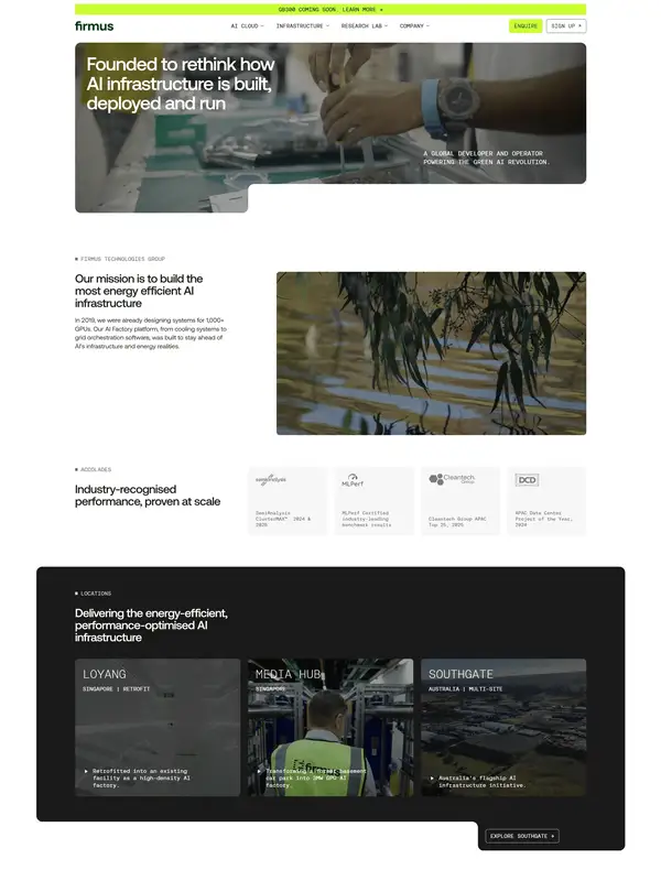 We design and operate Firmus Cloud and AI Factories — sovereign, modular systems that optimise cost and power at every layer of the stack. Founded to rethink how AI infrastructure is built, deployed and run.