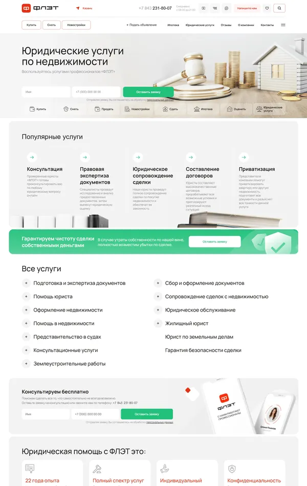 Компания предоставляет полный комплекс услуг по купле-продаже и аренде недвижимости, включая риелторов, ипотечных брокеров и юристов, а также бесплатные консультации.
