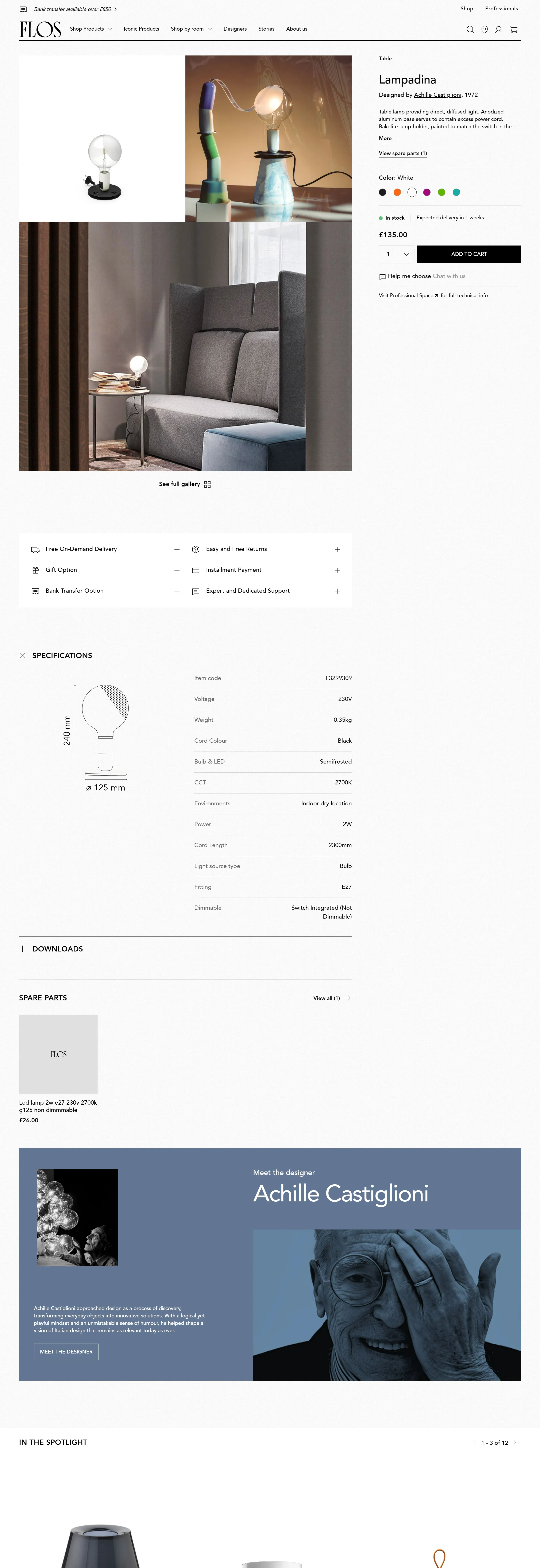 Официальный интернет-магазин Flos предлагает оригинальные знаменитые лампы, созданные награжденными дизайнерами, с бесплатной доставкой и возвратами.