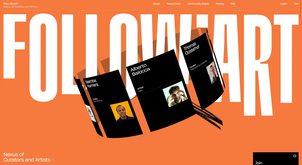 FOLLOW.ART is a global digital platform for contemporary curators and artists to showcase portfolios, collaborate, and gain recognition. It provides tools for professional presentation, visibility, connection, and knowledge sharing.
