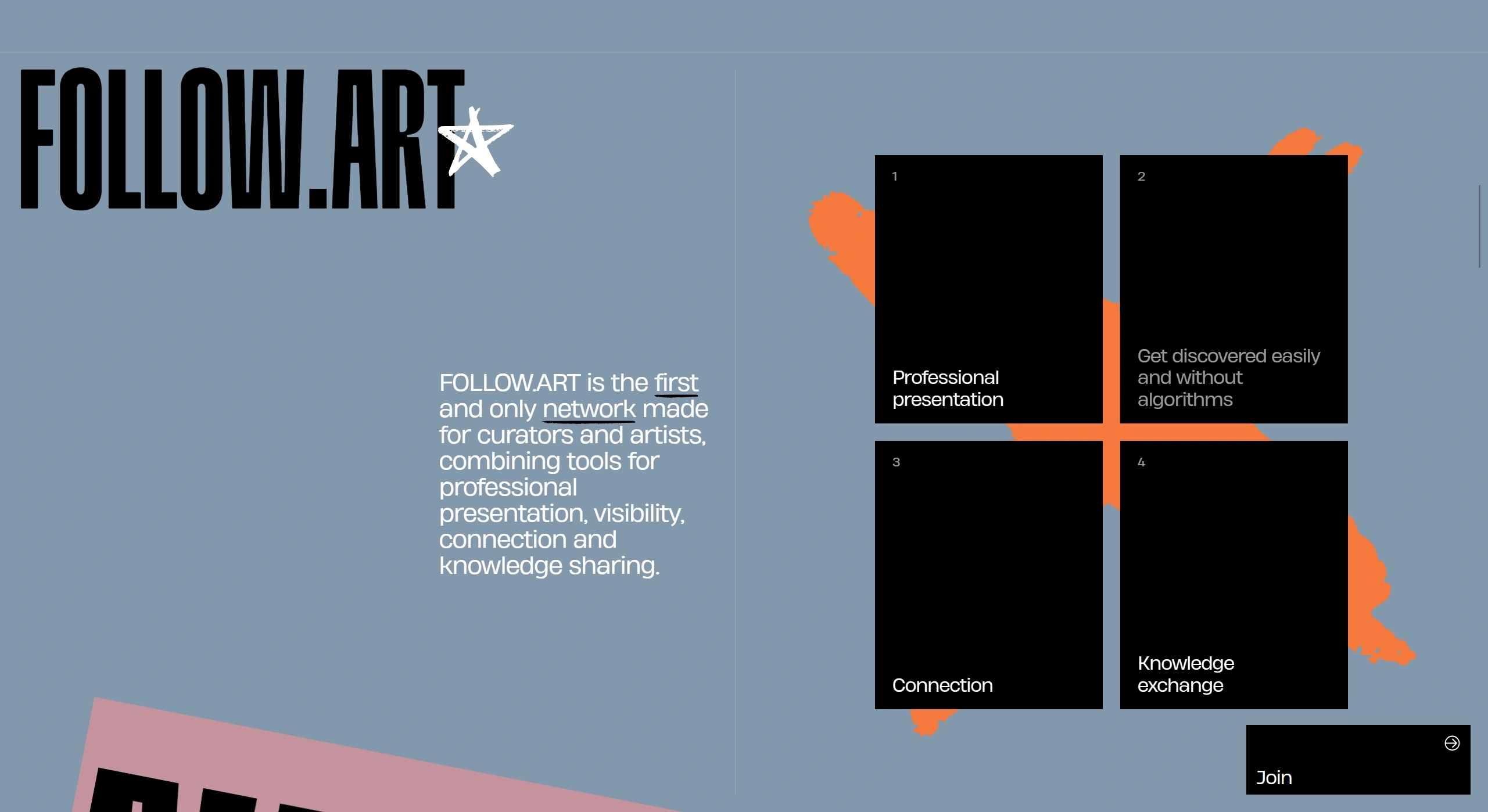 FOLLOW.ART is a global digital platform for contemporary curators and artists to showcase portfolios, collaborate, and gain recognition. It offers tools for professional presentation, visibility, connection, and knowledge sharing.