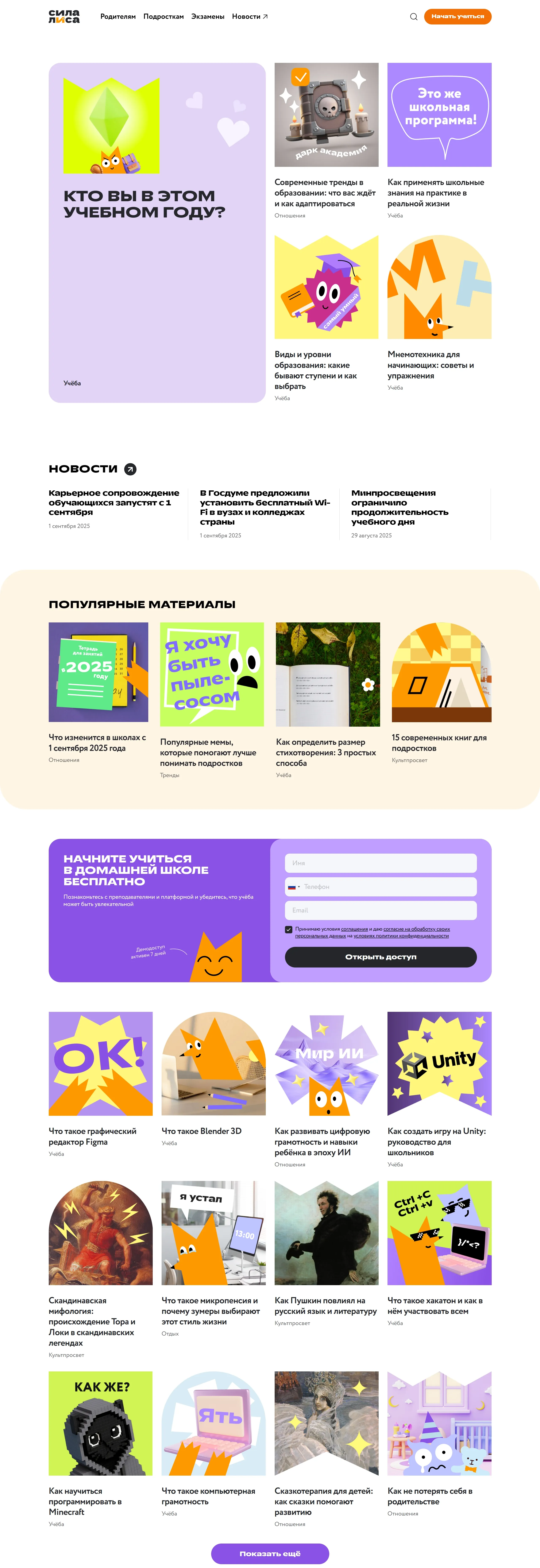 Блог Фоксфорд, тематика — Образование, цвета — Белый, стиль — Корпоративный, типографика — Без засечек, Декоративные