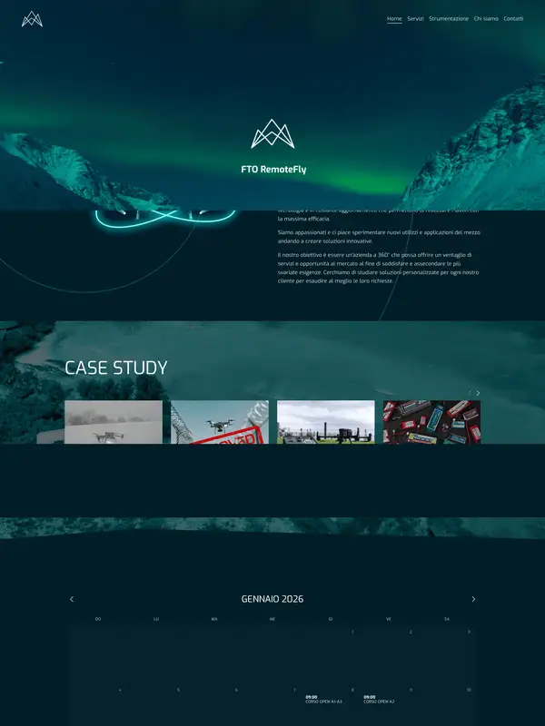 Компания занимается предоставлением профессиональных услуг с использованием дронов, включая стоимостные и технические обследования, мультимедийные продукты и курсы обучения. Она аккредитована ENAC и имеет опыт в различных областях, таких как фотограмметрия и сельское хозяйство.