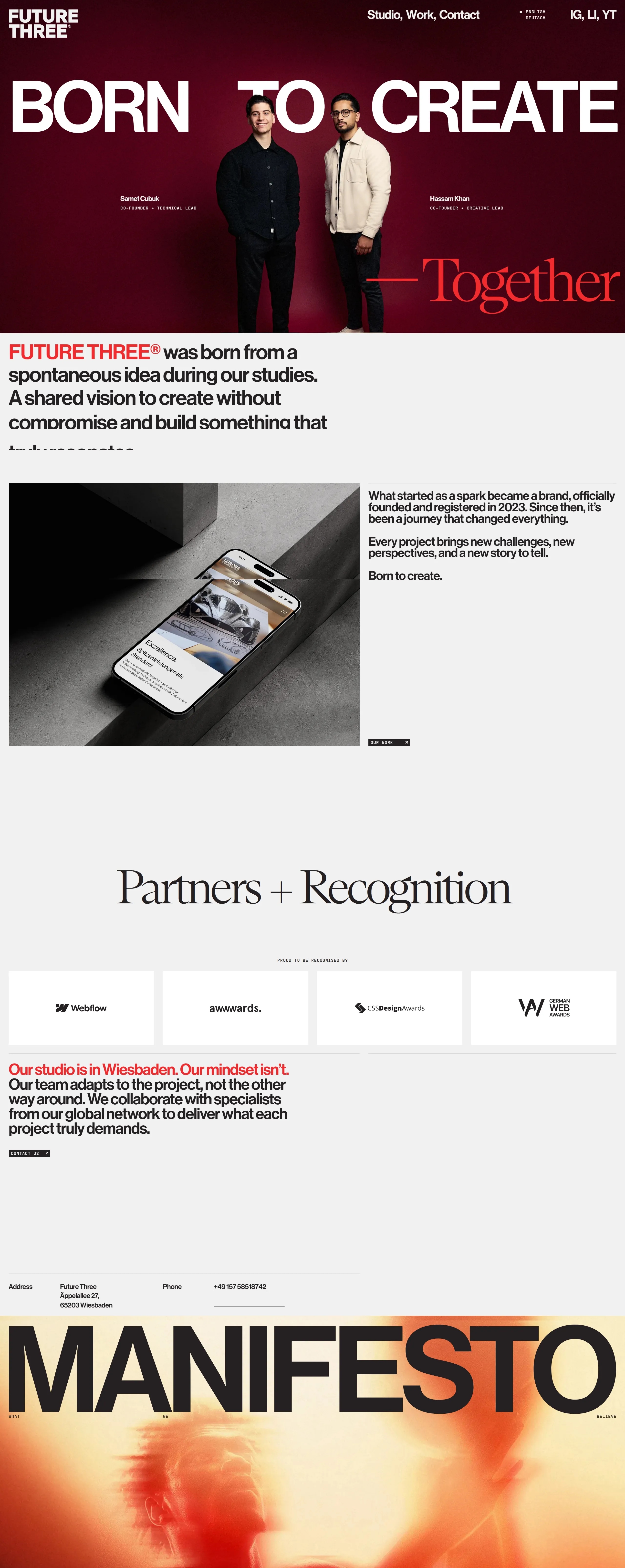 Это студия из Висбадена, которая создает уникальные бренды и веб-сайты, соединяющие эстетическую точность с стратегической функцией, и отмечена множеством наград.