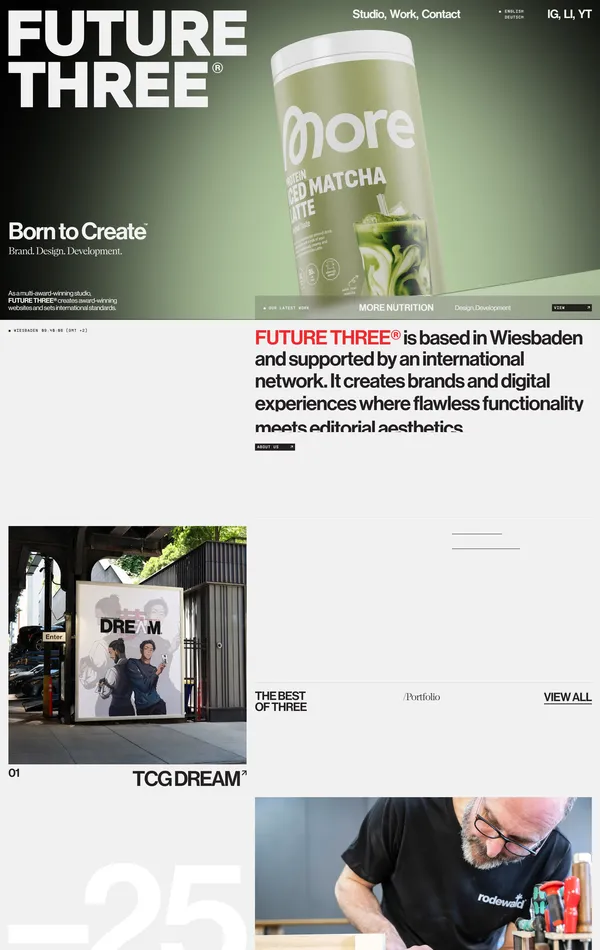 Это наградное креативное студио из Висбадена, которое создает яркие бренды и погружающие веб-сайты, сочетая эстетическую точность с функциональной стратегией.