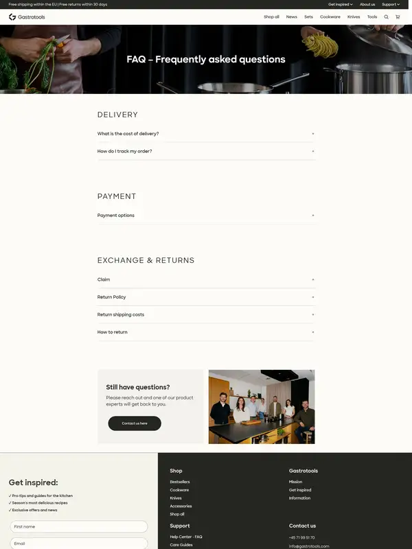 Gastrotools supplies professional-quality kitchen equipment, including pots, pans, kitchen knives, and other tools, developed with top chefs and manufacturers.