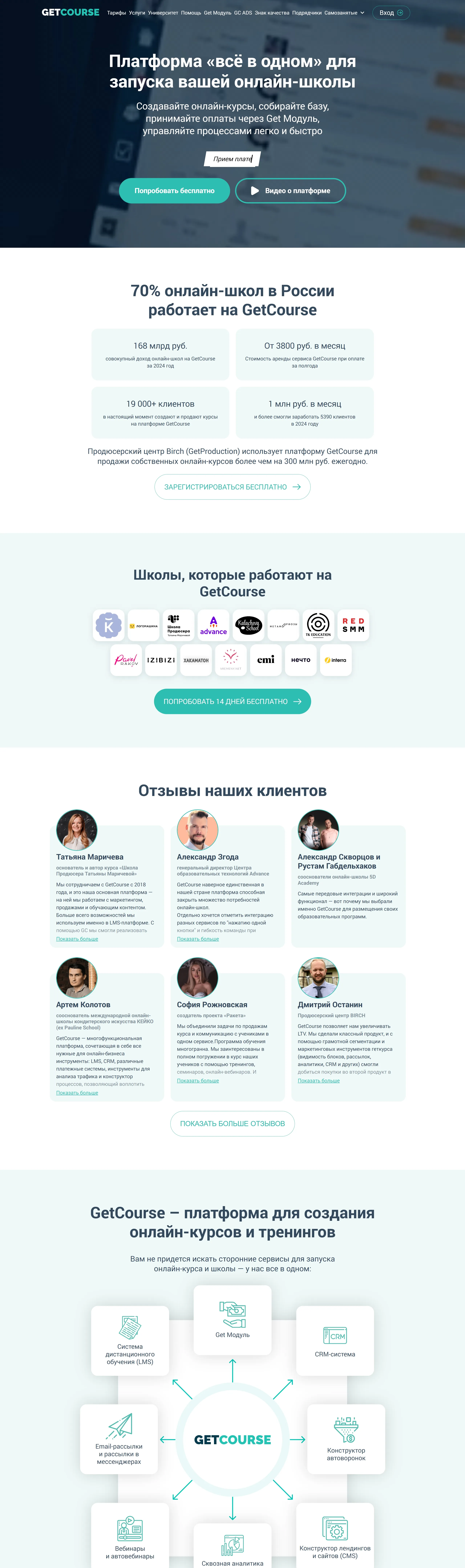 Платформа для запуска онлайн-курсов и дистанционного обучения, предлагающая широкий функционал для управления курсами, сбора базы и приема оплат. Более 70% онлайн-школ в России используют эту платформу.