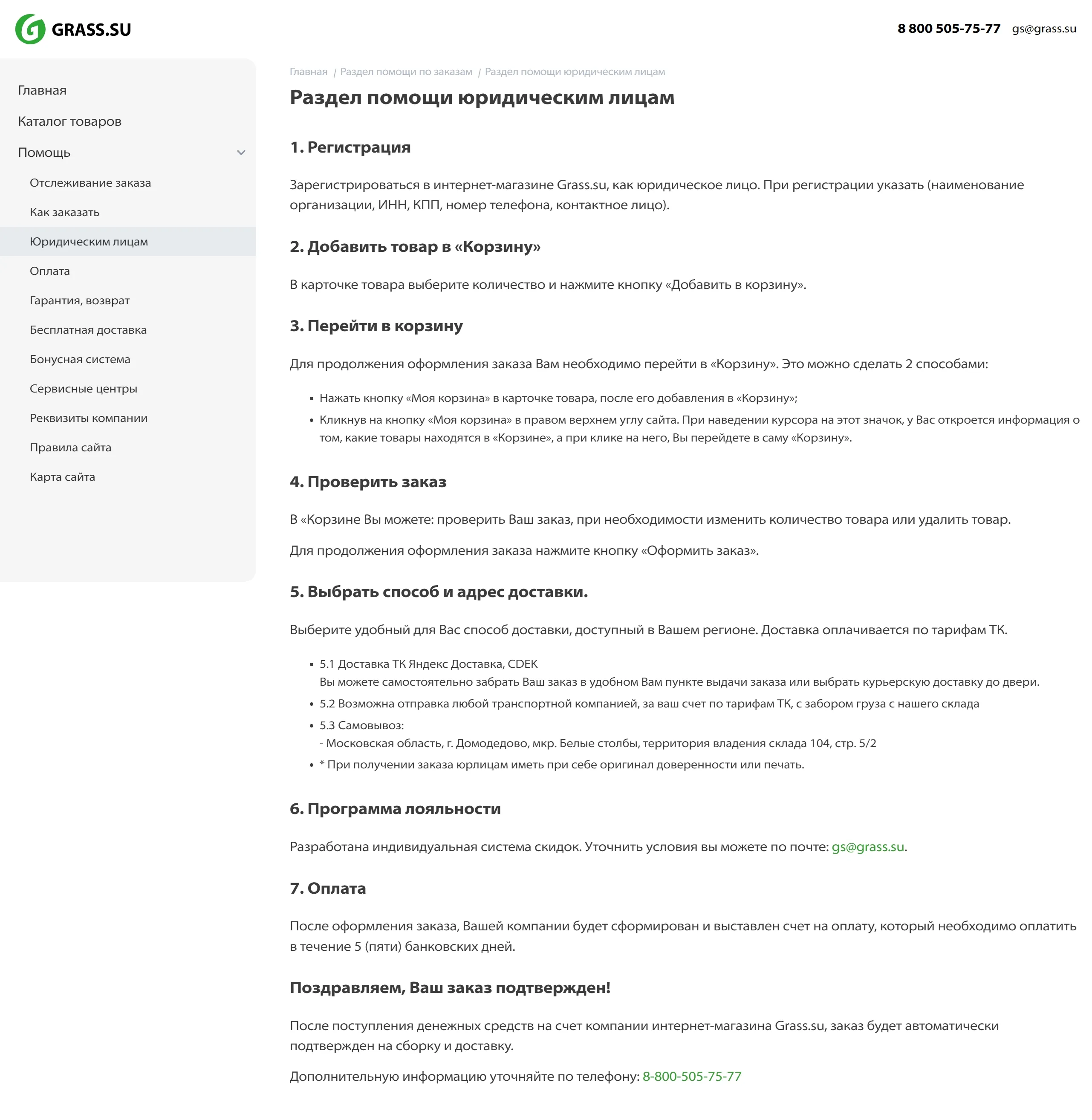 Контакты GRASS, тематика — Интернет-магазин, цвета — Белый, стиль — Корпоративный, типографика — Без засечек