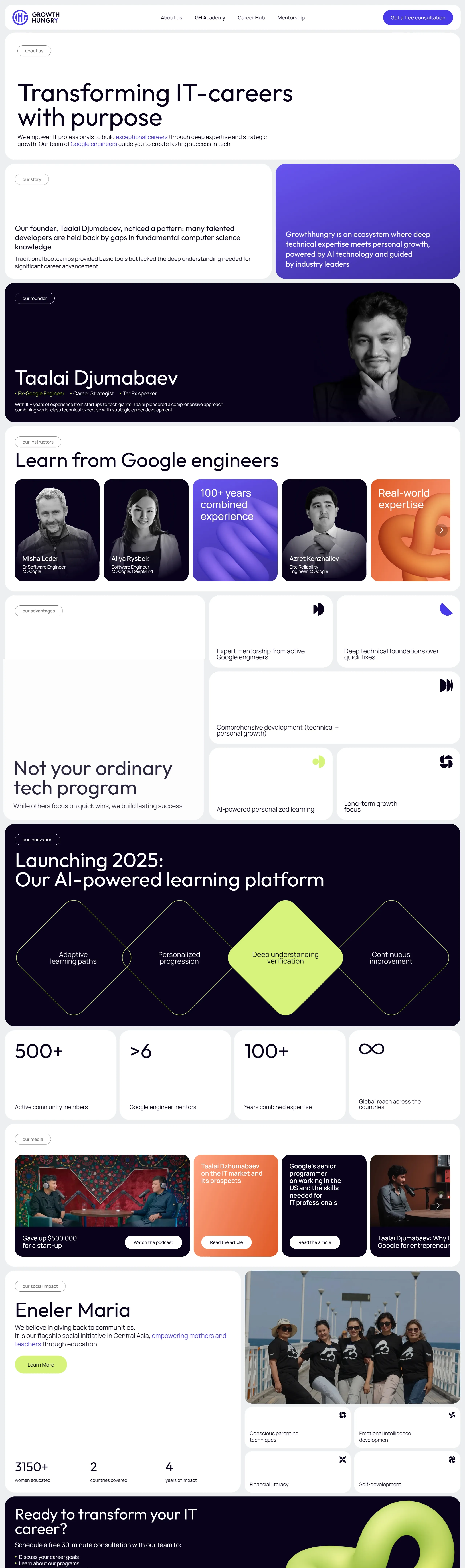 Платформа, предоставляющая IT-профессионалам возможность получать наставничество от инженеров Google, осваивать технические навыки и готовиться к ведущим ролям в сфере технологий с помощью персонализированного обучения, основанного на ИИ.