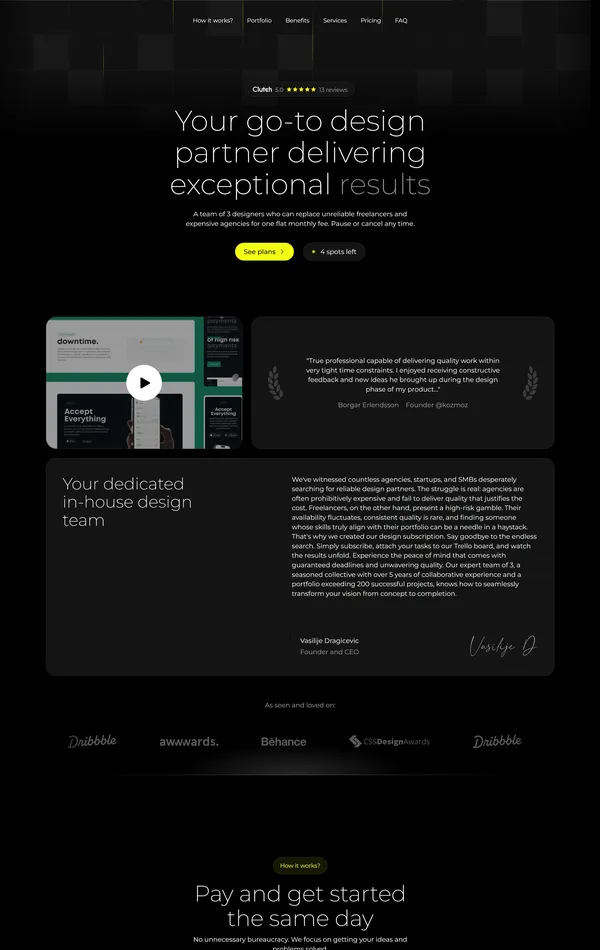 Полносервисная дизайн-команда, предлагающая свои услуги за простую ежемесячную плату.