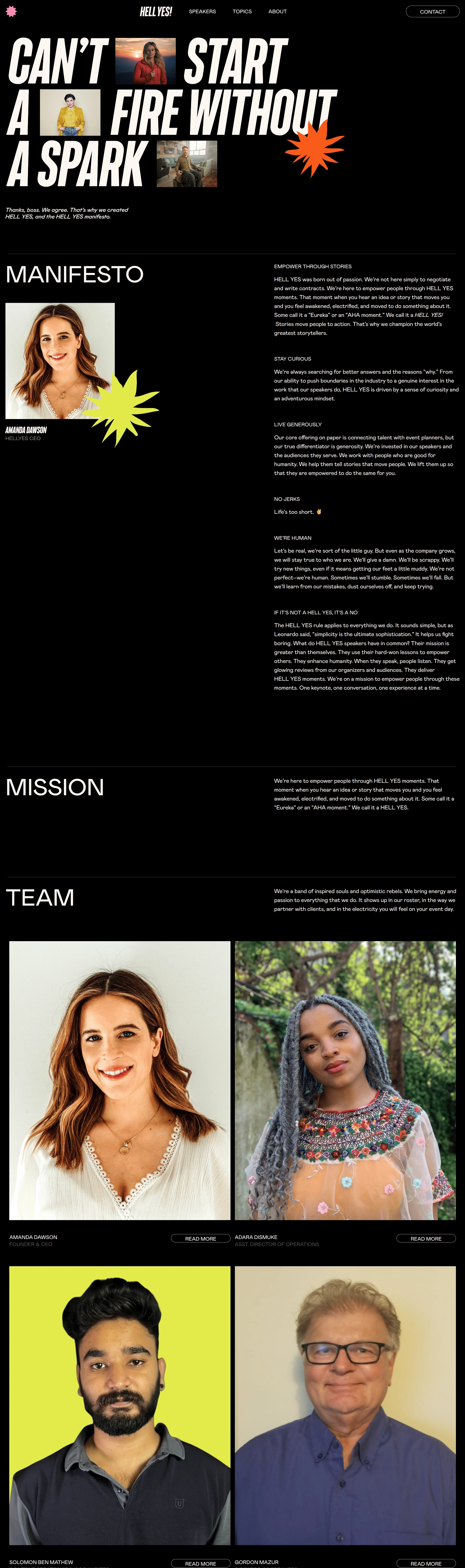 HELL YES! is a keynote speakers agency that represents speakers on various important topics aimed at empowering audiences through impactful moments. They focus on fostering conversations around innovation, leadership, and diversity.