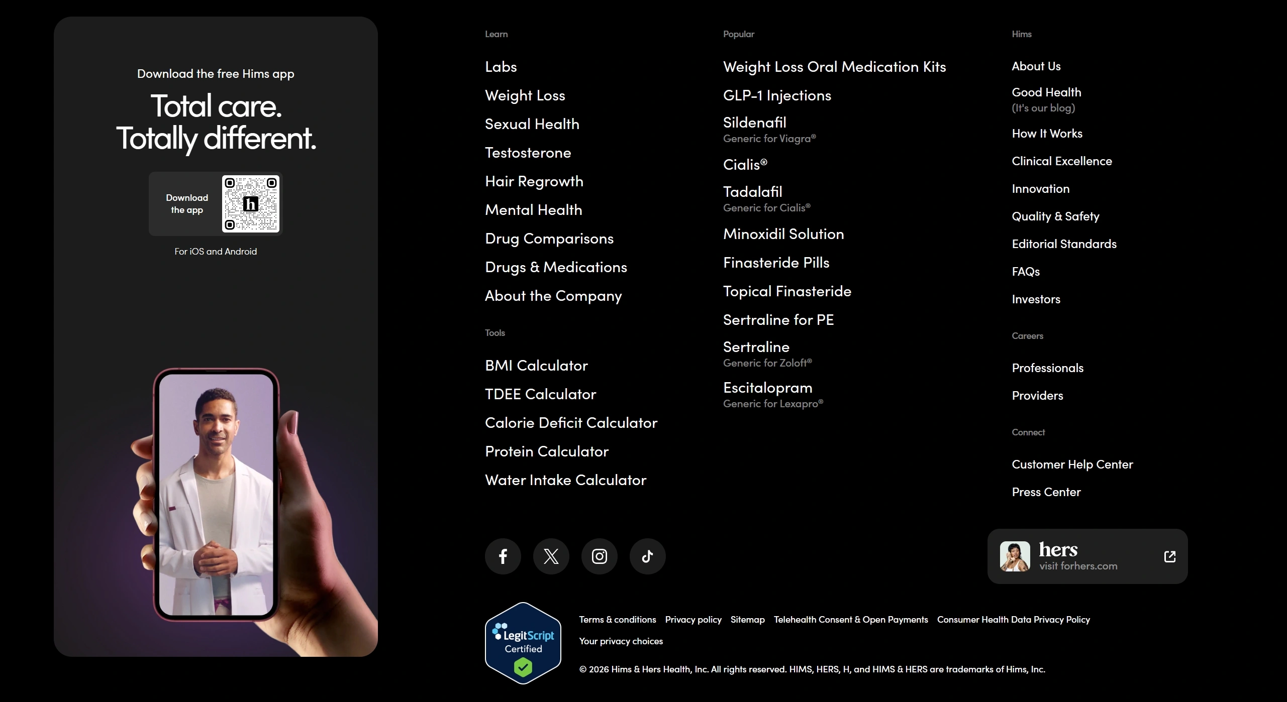 Этот бренд предлагает решения в области здоровья и благополучия, включая медицинские услуги, уход за волосами и средства для улучшения половой функции. Hims нацелен на улучшение здоровья и уверенности мужчин.