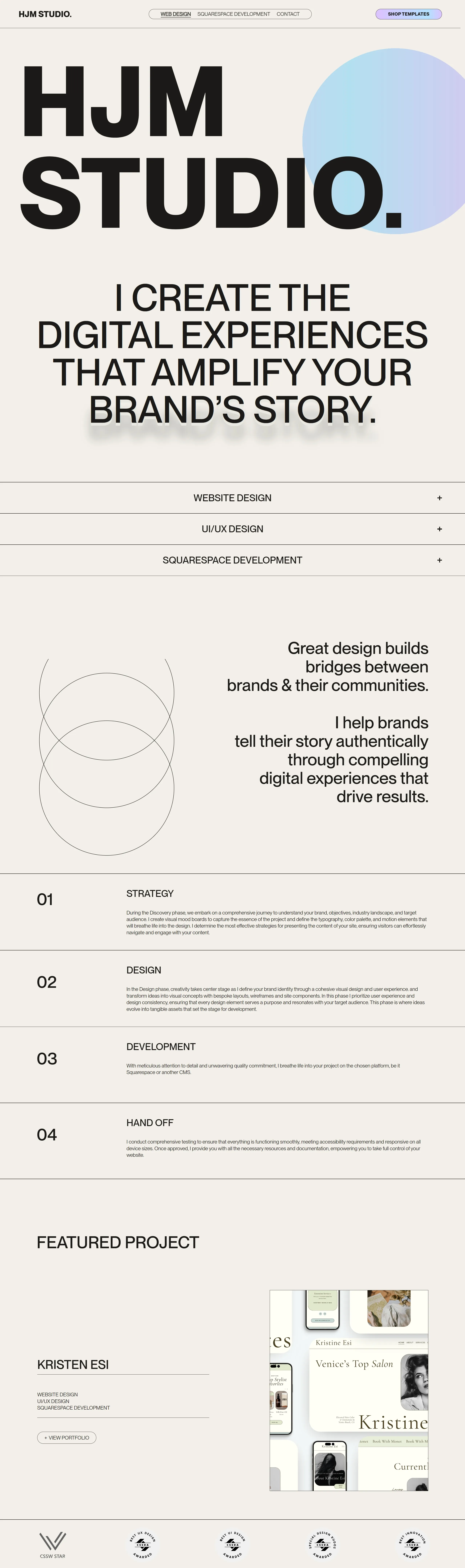 Компания предлагает award winning UI/UX веб-дизайн и специализируется на креативной разработке сайтов, разработке шаблонов Squarespace и консультациях по UX/UI.