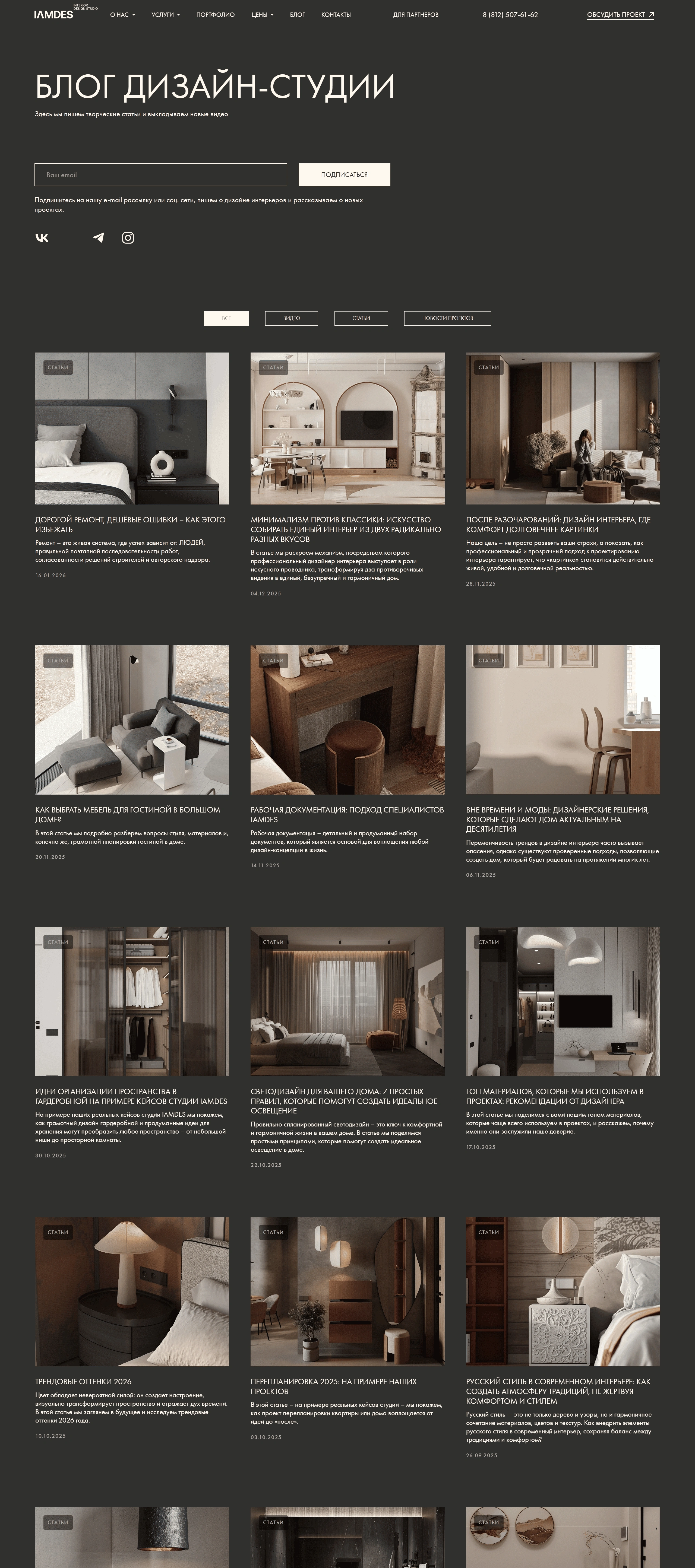 Блог I AM DESIGN STUDIO, тематика — Дизайн, цвета — Черный, Серый, стиль — Карточный, Минимализм, типографика — Без засечек