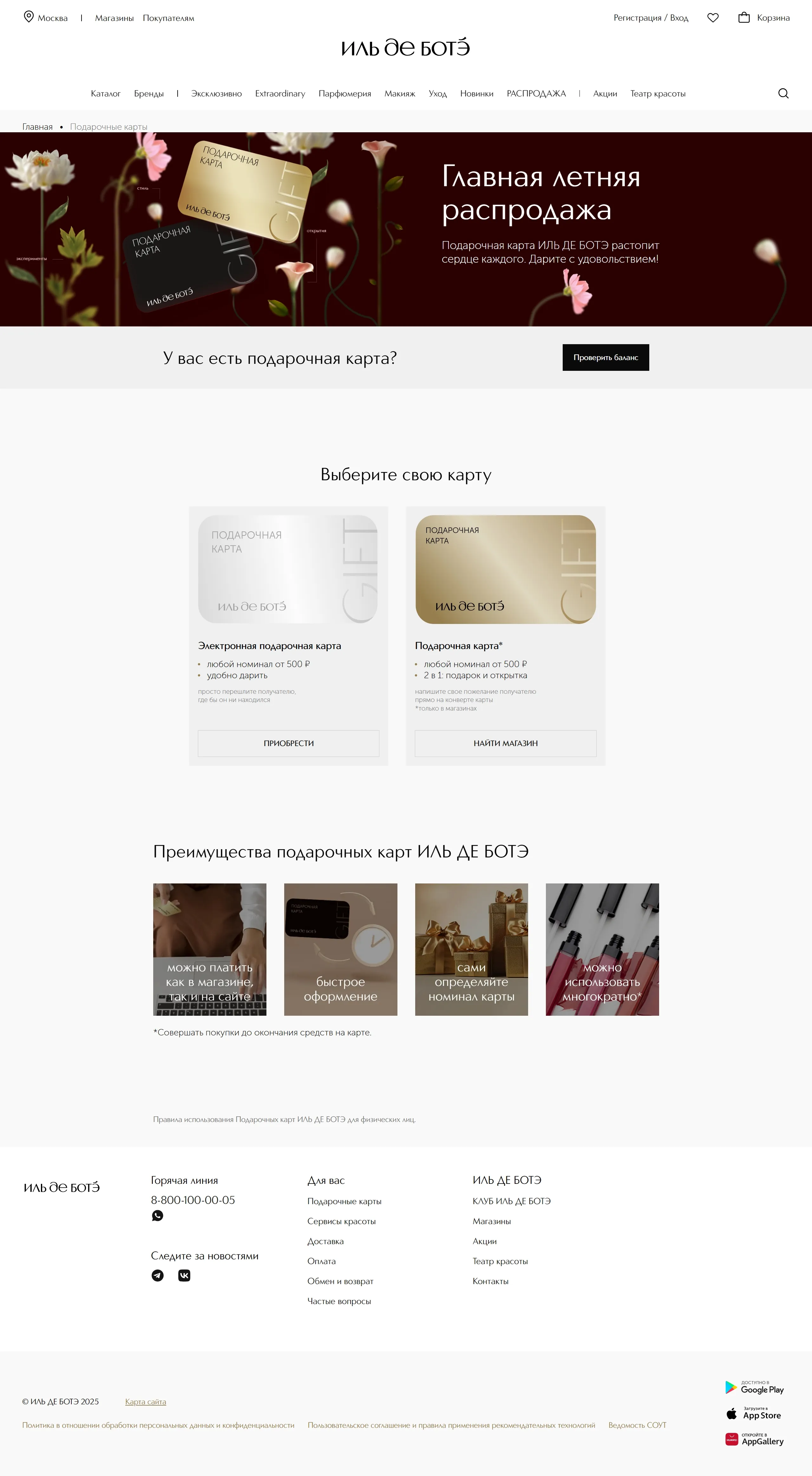 Программа лояльности ИЛЬ ДЕ БОТЭ, тематика — Интернет-магазин, Красота, цвета — Белый, стиль — Корпоративный, типографика — Без засечек