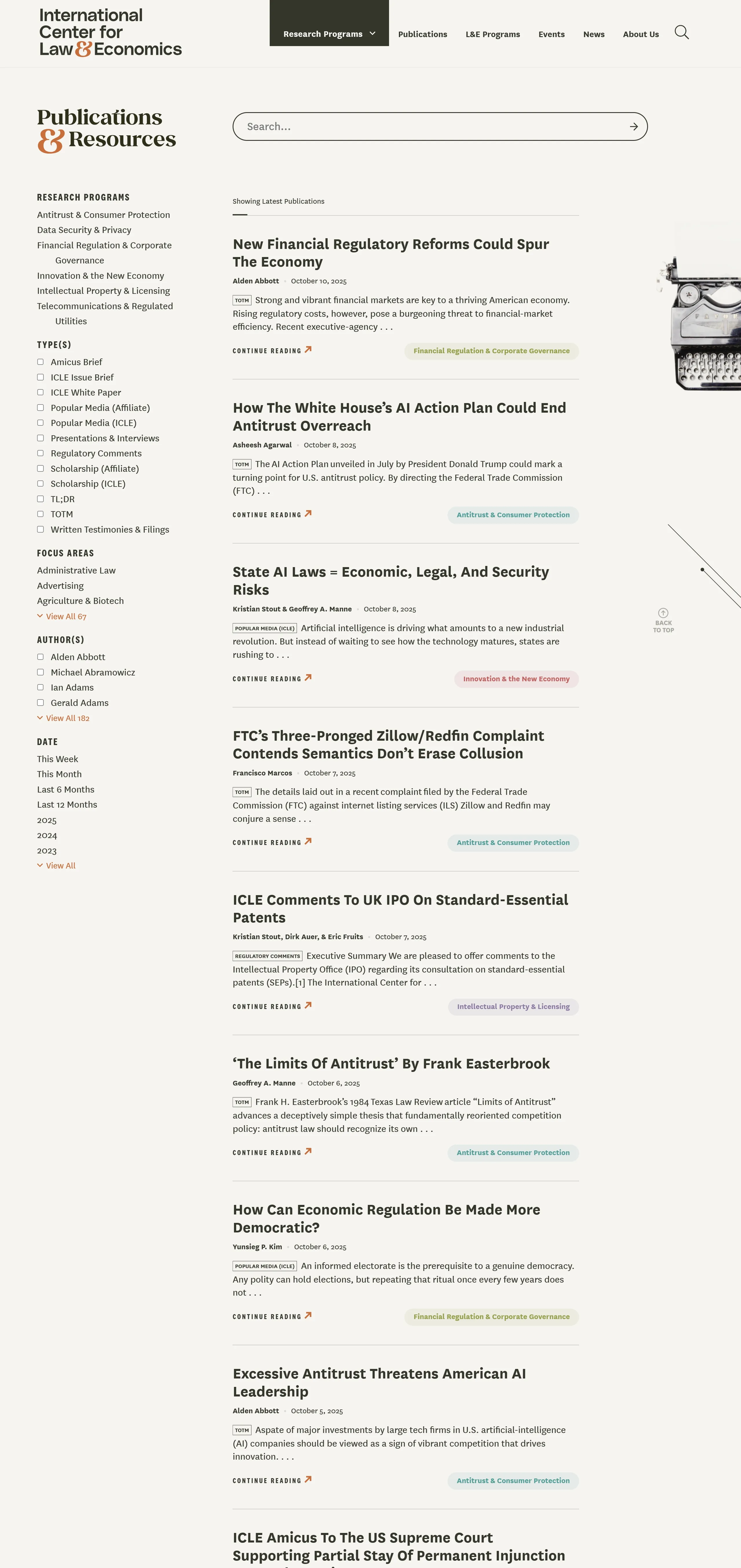 Эта организация занимается проведением исследований и разработкой программ в области права и экономики, включая антимонопольное регулирование, защиту данных, финансовое регулирование и интеллектуальную собственность.