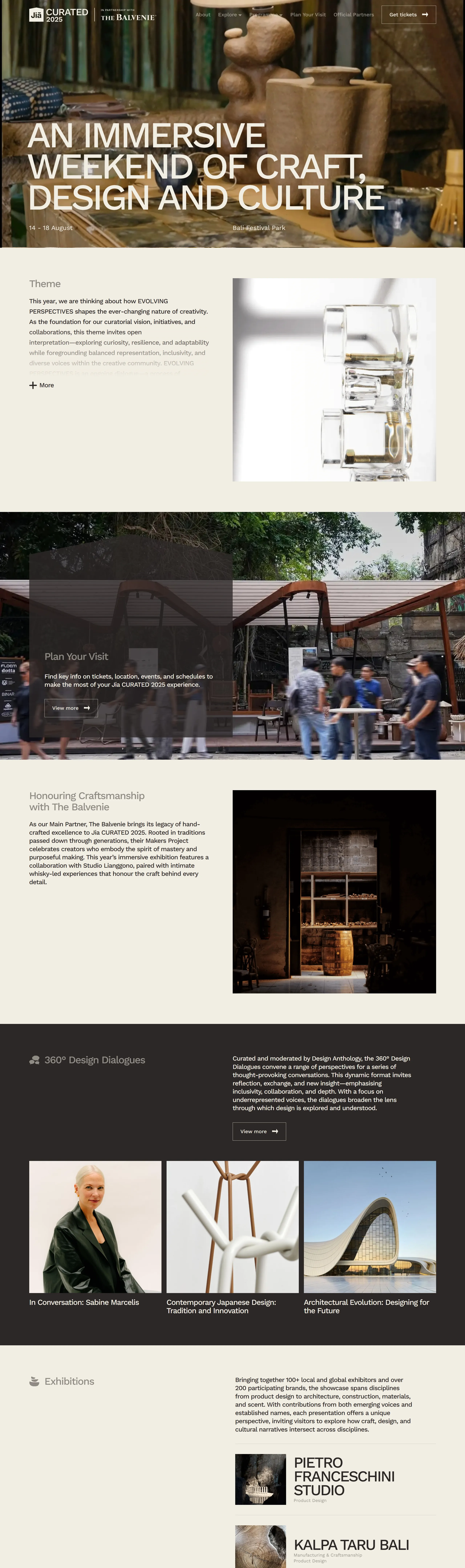 Jia CURATED 2025 является immersive-мероприятием, посвященным ремеслам, дизайну и культуре, которое состоится с 14 по 18 августа 2025 года в Bali Festival Park. Темой этого года станет "EVOLVING PERSPECTIVES", ориентированная на исследование креативности и разнообразных голосов в творческом сообществе.