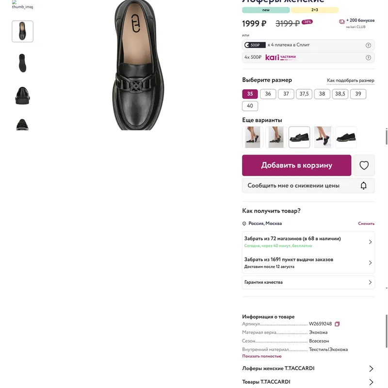 Сеть из 1200 магазинов, предлагающая обувь и аксессуары для женщин, мужчин и детей, а также товары для мам и малышей с возможностью онлайн-заказа и оплаты частями.