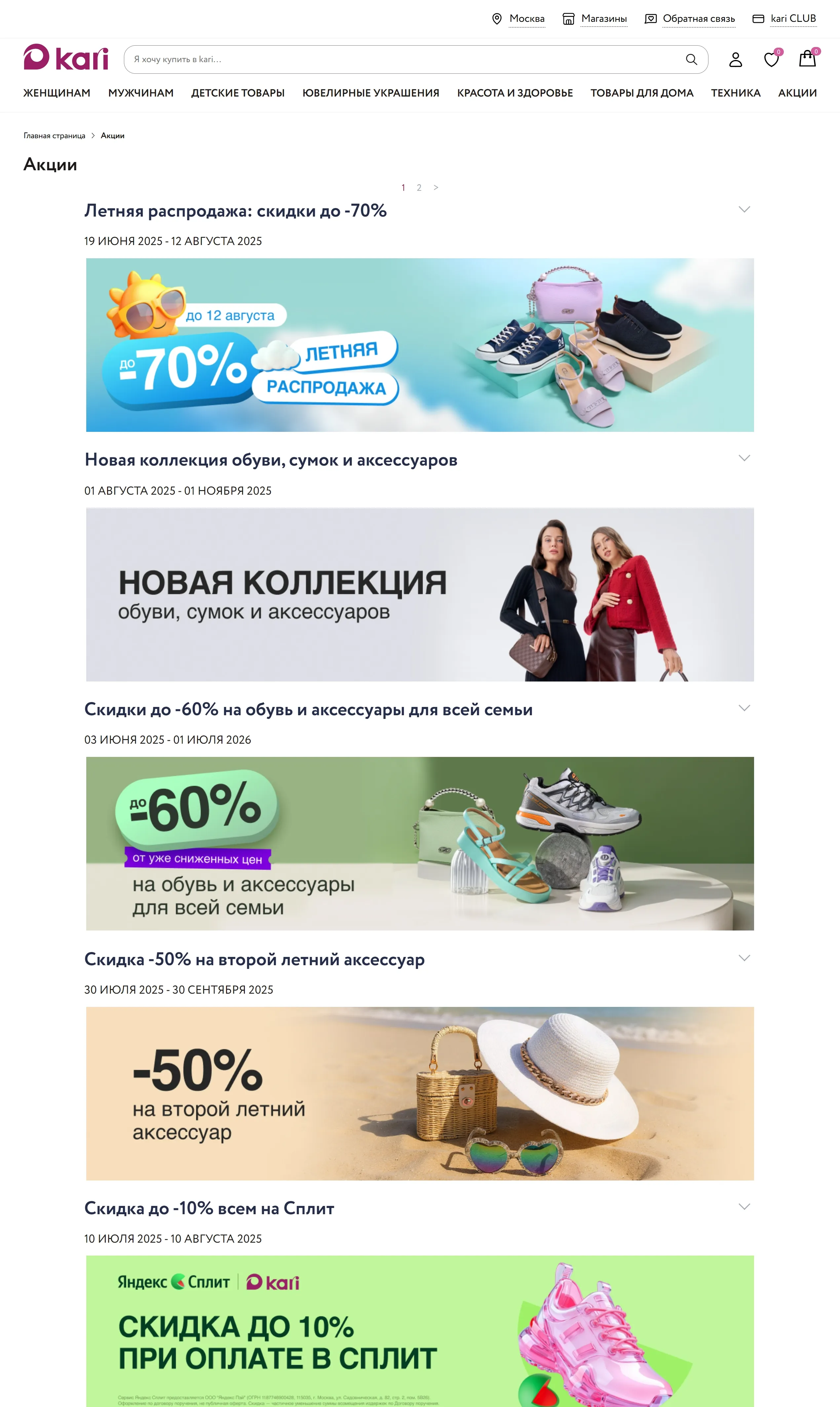 Сеть из 1200 магазинов, предлагающая обувь и аксессуары для женщин, мужчин и детей, а также товары для мам и малышей с возможностью онлайн-заказа и оплаты частями.