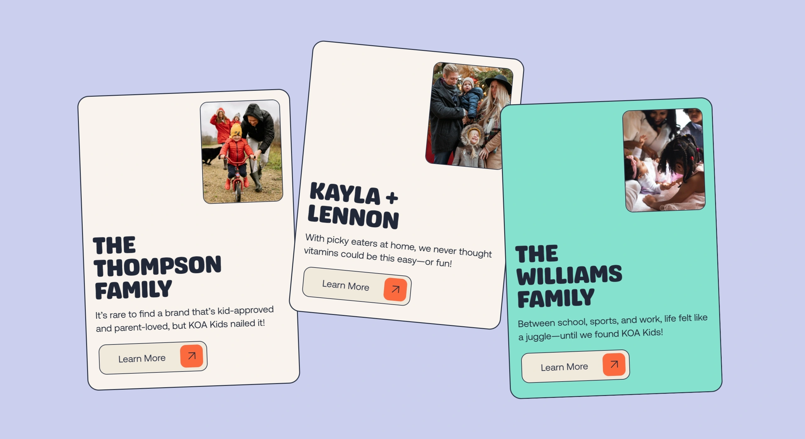 KOA Kids offers vitamins designed for real families, combining scientific backing with a love from both kids and parents. Customers can subscribe for discounts on their first month.