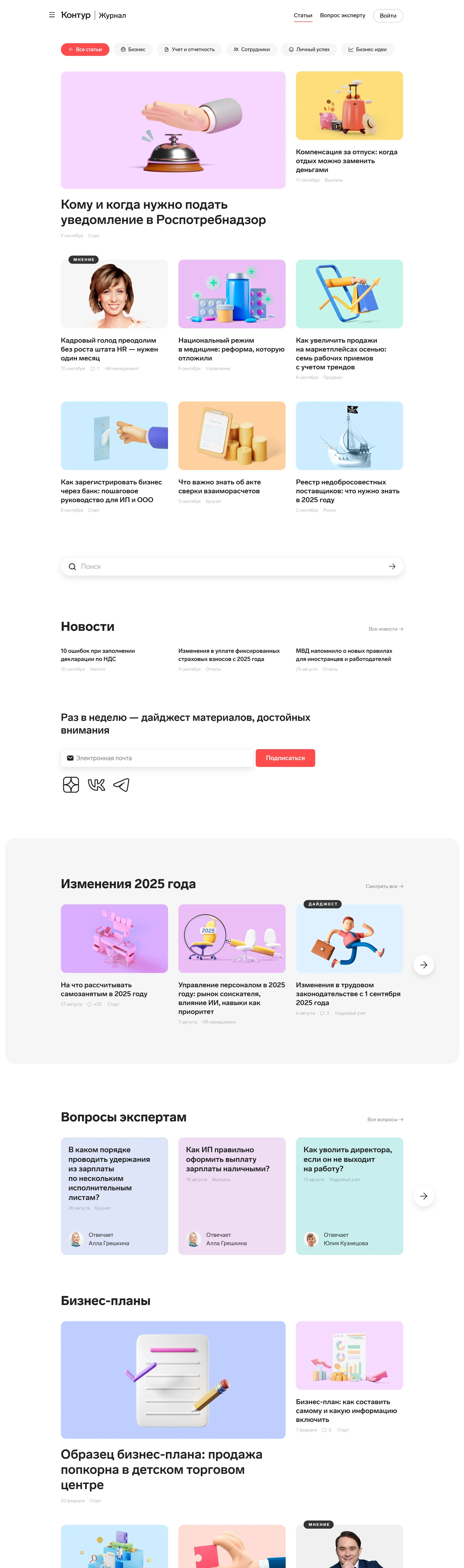 Блог Контур, тематика — Бизнес и профессиональные услуги, цвета — Белый, стиль — Корпоративный, типографика — Без засечек