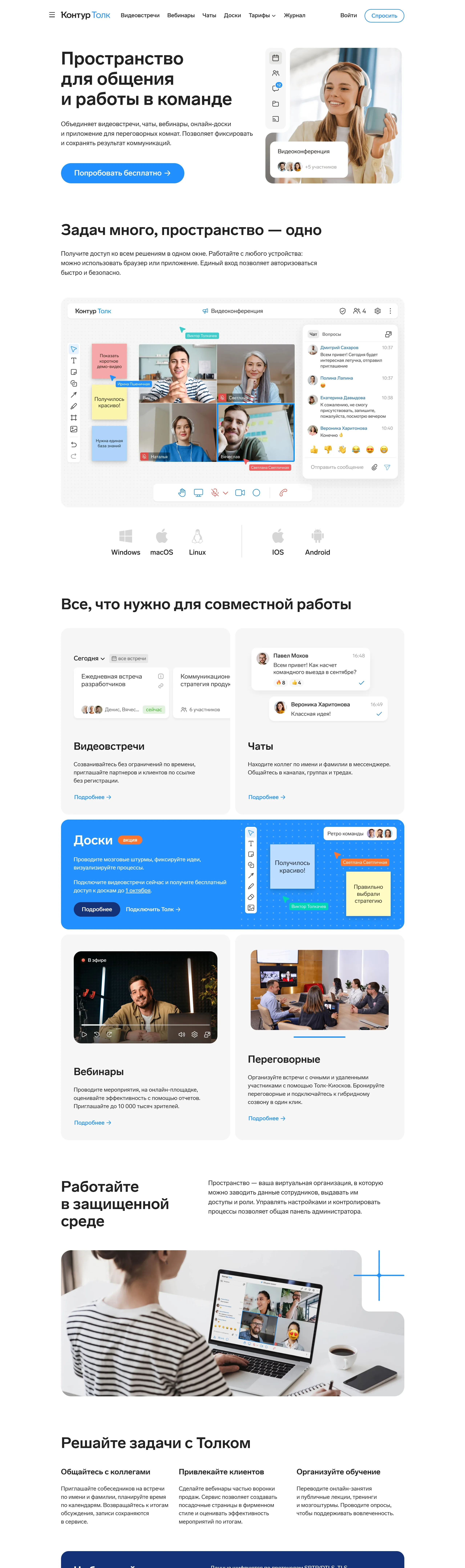 Многостраничный сайт Контур, тематика — SaaS, цвета — Белый, стиль — Корпоративный, типографика — Без засечек