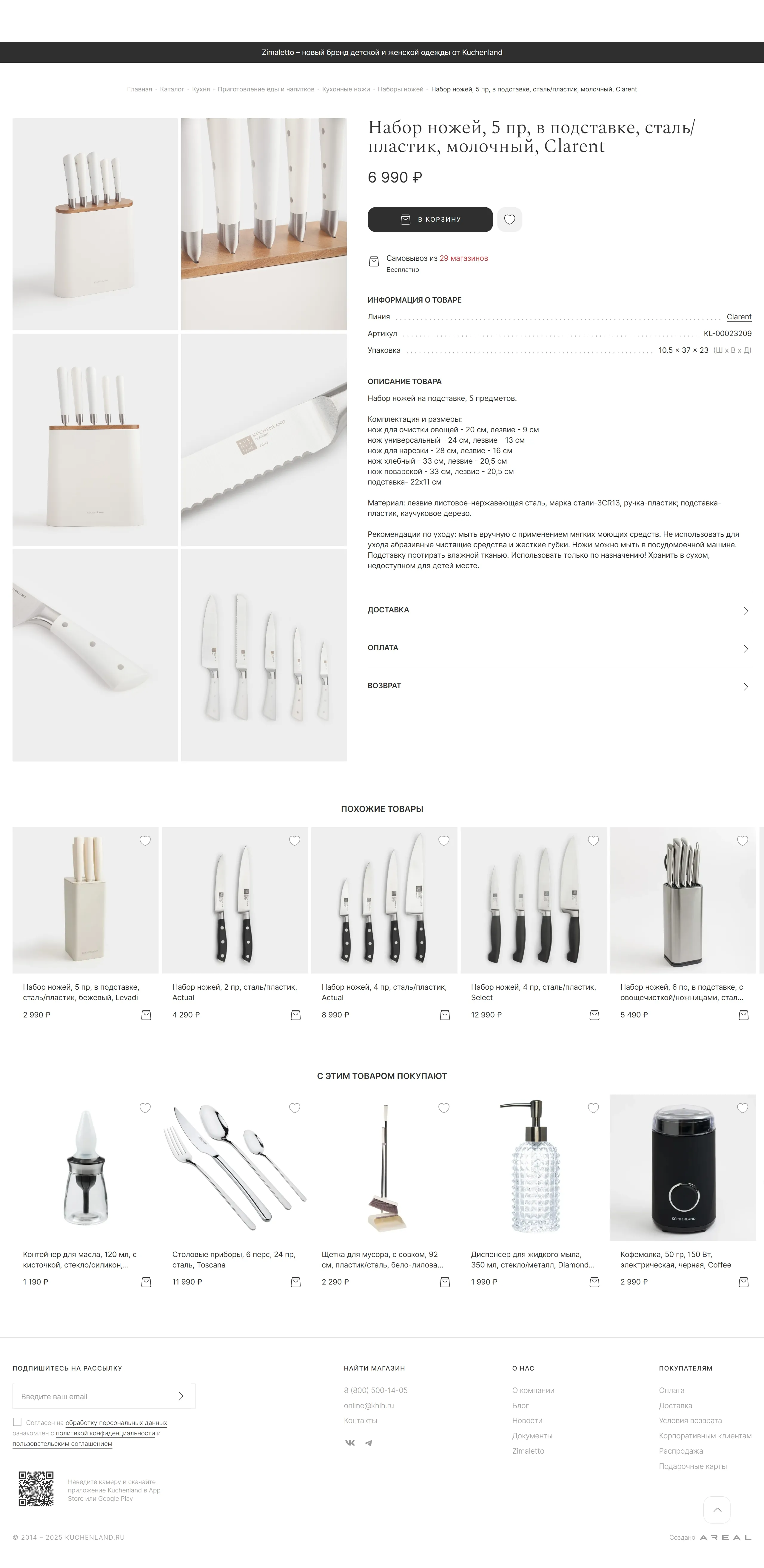 Секция «Контакты» с сайта https://www.kuchenland.ru/, тематика — Интернет-магазин, цвета — Белый, стиль — Корпоративный, Минимализм, типографика — Без засечек