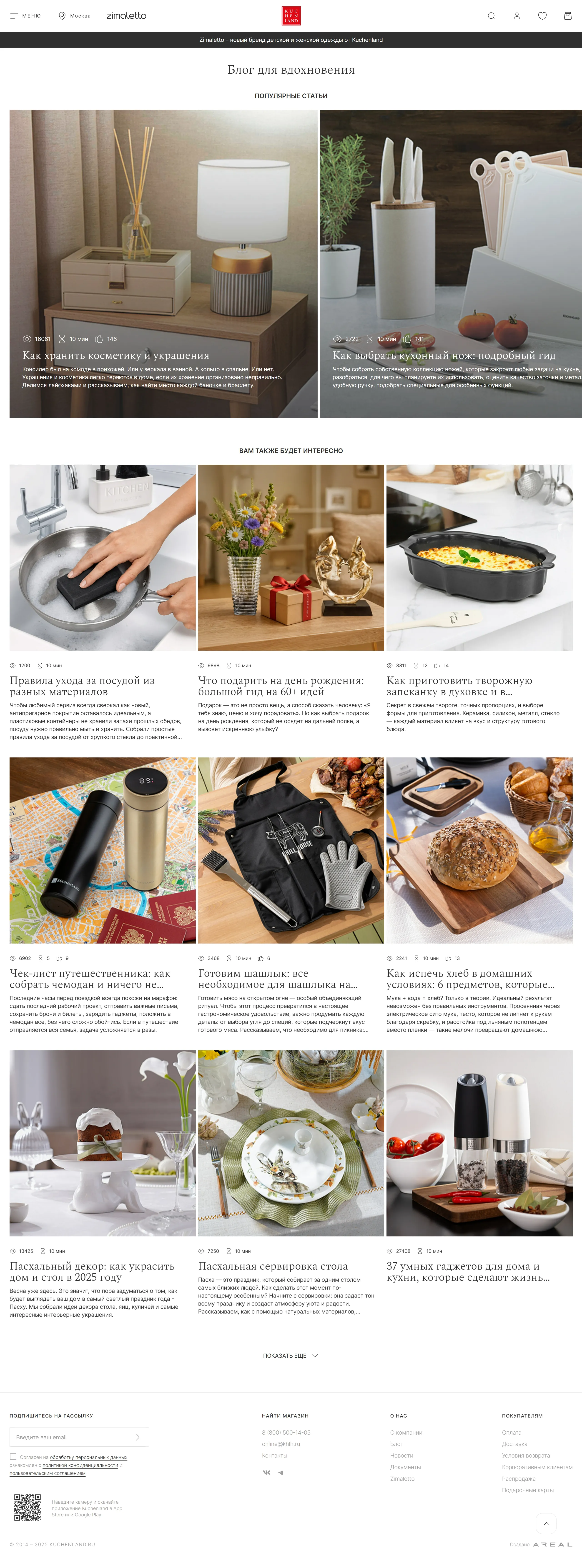 Блог Kuchenland Home, тематика — Интернет-магазин, Блог, цвета — Белый, Серый, стиль — Корпоративный, типографика — Без засечек