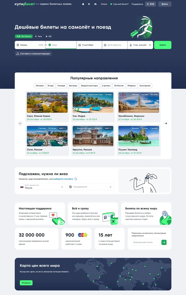 Сервис предлагает быстрый поиск и покупку дешёвых авиабилетов онлайн, а также бронирование билетов на поезд и отели по всему миру. Клиенты могут легко находить низкие цены и получать оперативную поддержку.