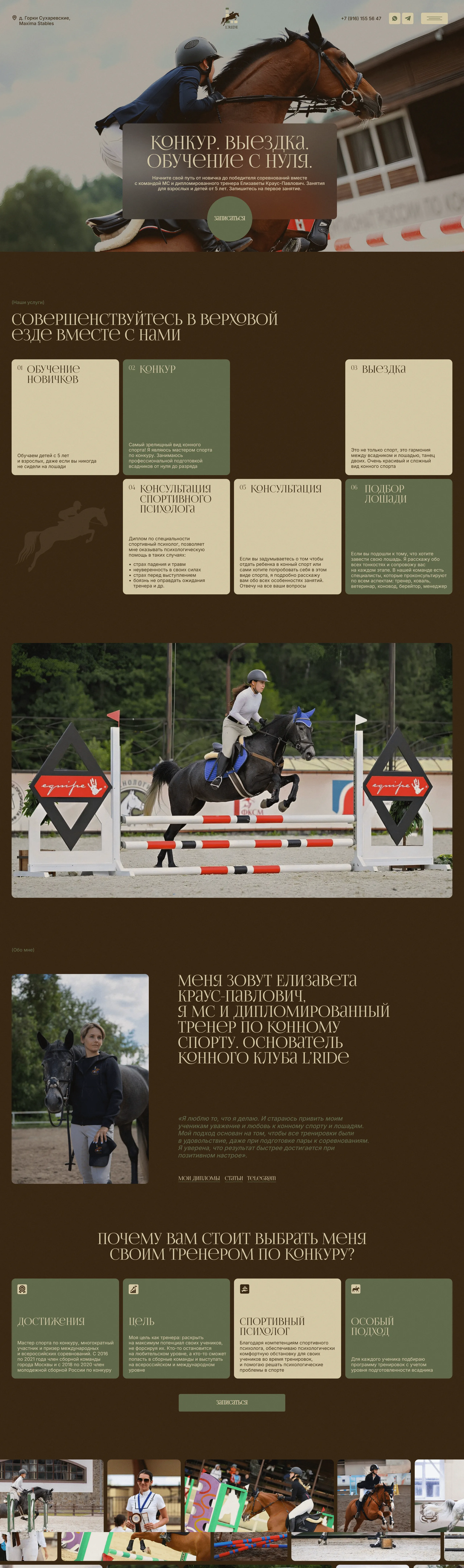 Конный клуб в Москве, предлагающий занятия по верховой езде профессионального уровня, включая конкур и выездку. Обучение с нуля под руководством дипломированного тренера, доступное для взрослых и детей от 5 лет.