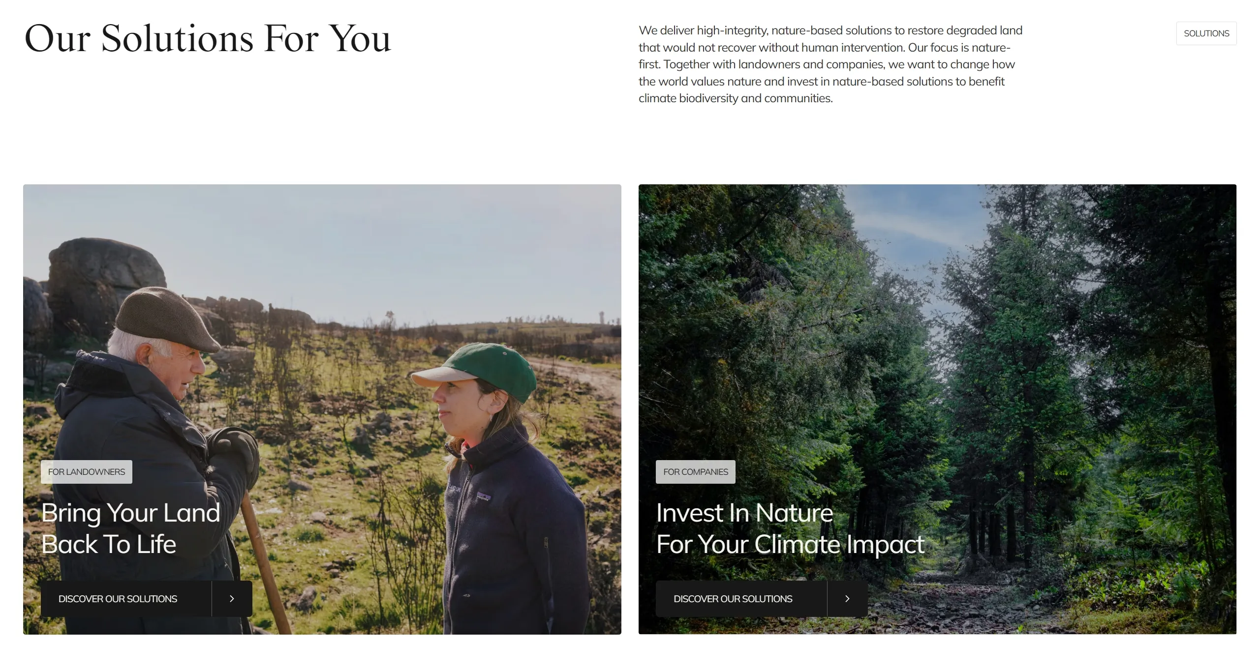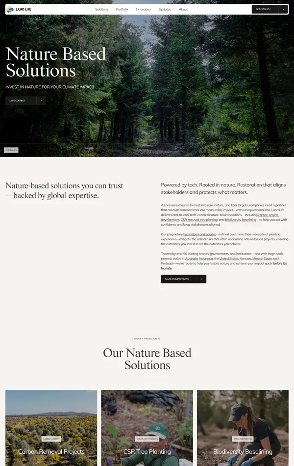 Компания занимается восстановлением и лесовосстановлением природы на глобальном уровне, используя инновационные научные и технологические решения. Она предлагает инвестировать в решения, основанные на природе, и реализует проекты с высокой степенью интеграции.