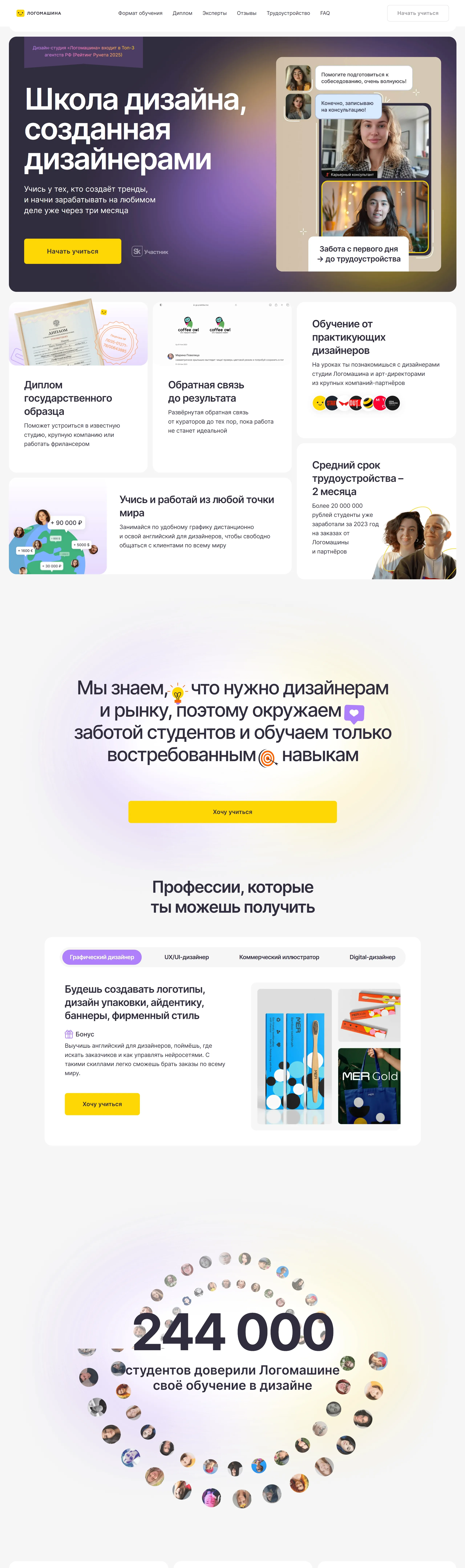 Лендинг Логомашина, тематика — Образование, Дизайн, цвета — Белый, Серый, стиль — Корпоративный, типографика — Без засечек