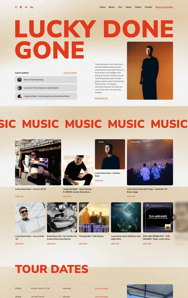 DJ Lucky Done Gone steadily establishes his presence in the music scene with energetic sets and a friendly vibe, gaining recognition well beyond the Netherlands. His ability to connect with the crowd enhances his performances, making him a sought-after artist.