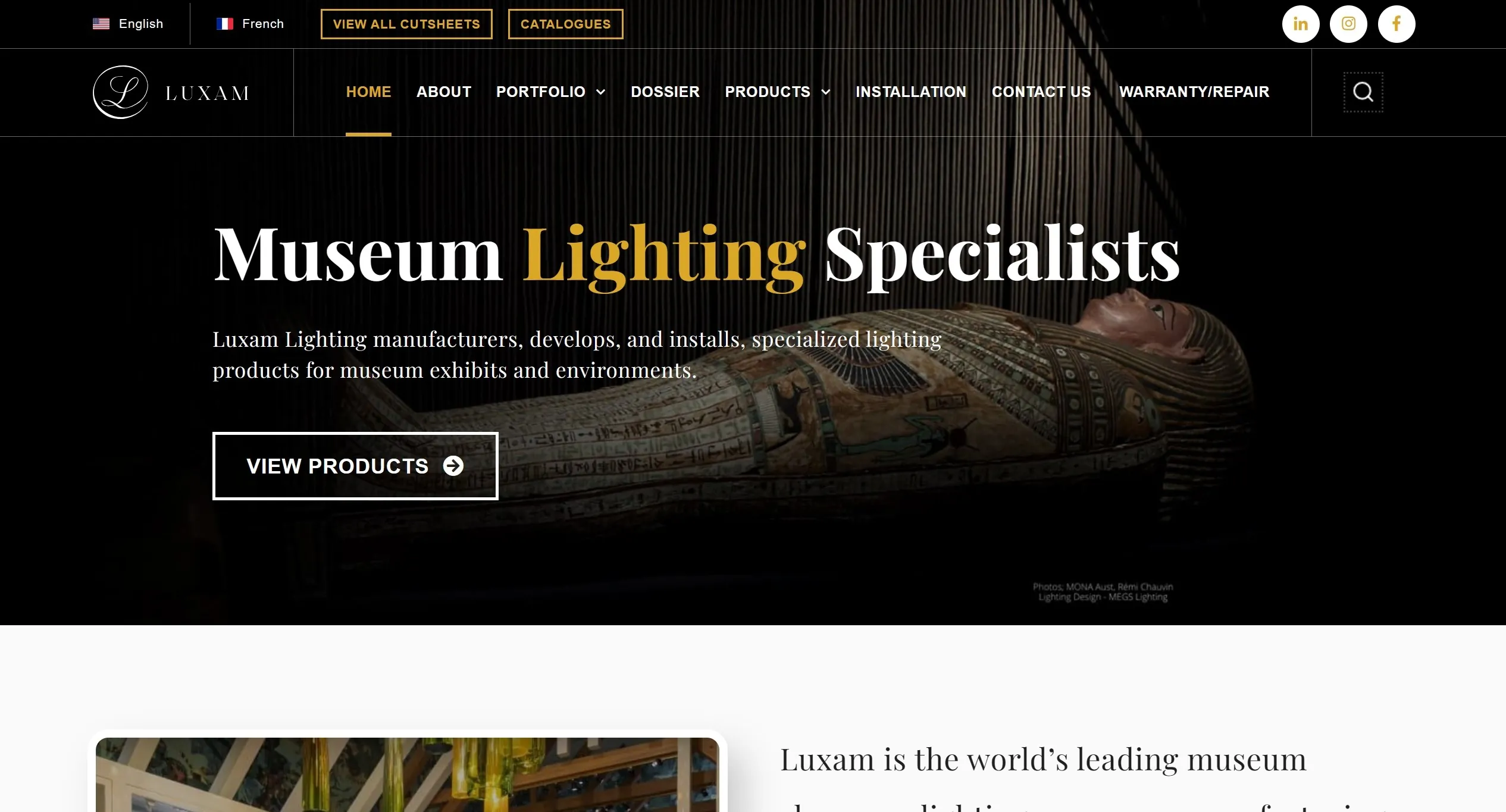 Компания Luxam является ведущим производителем специализированного освещения для музейных выставок и окружений, предлагая точное и динамичное оборудование для известных музеев мира.