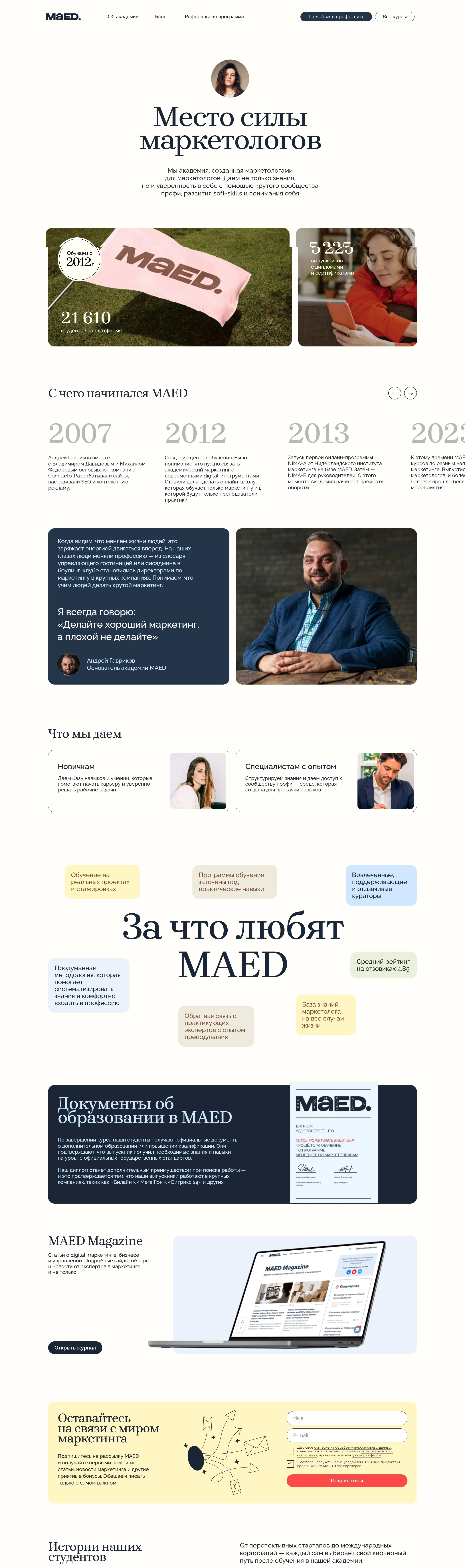 Академия маркетинга MAED предлагает курсы по интернет-маркетингу и рекламе, помогая людям выбрать востребованные профессии в digital-индустрии.