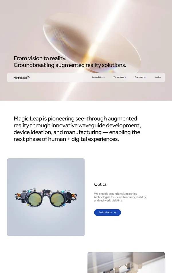 Компания разрабатывает прорывные решения в области дополненной реальности, используя инновационные технологии оптики и производство, чтобы создать захватывающий опыт взаимодействия между человеком и цифровым миром.