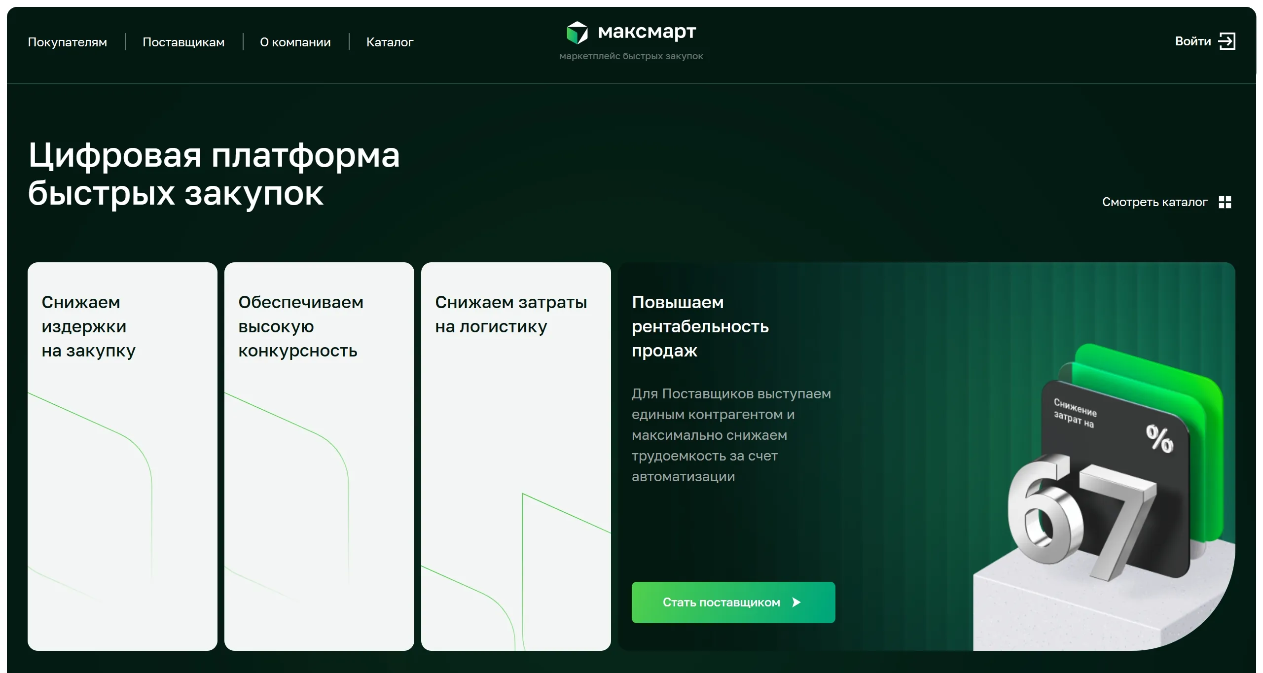 B2B электронная торговая площадка, обеспечивающая оптимизацию закупок для крупных промышленных компаний. Платформа предлагает широкий ассортимент товаров и услуги по логистике до базиса клиента.