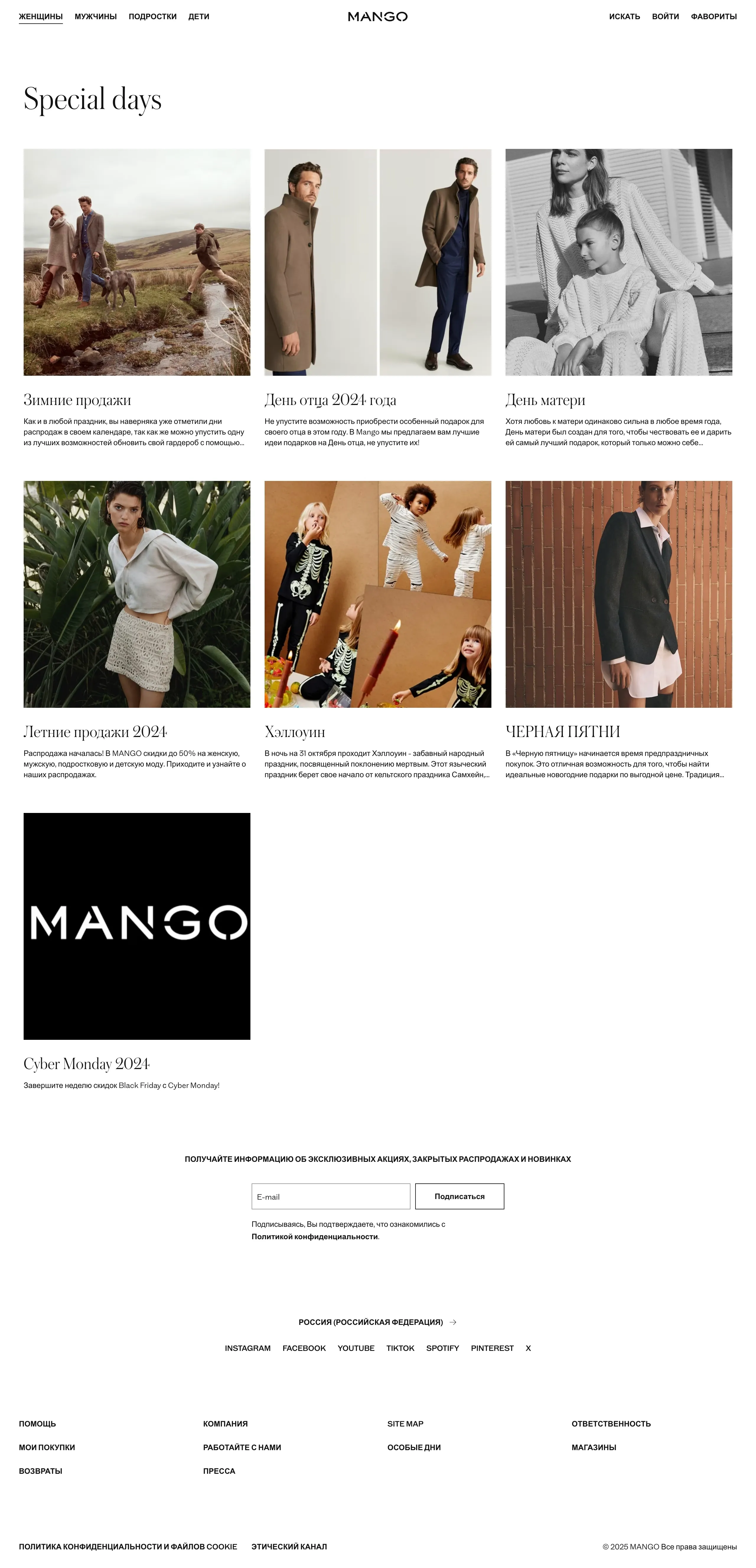 Компания предлагает специальные скидки и акции на праздники, такие как Черная пятница и День матери, предоставляя возможность обновить гардероб с помощью распродаж и уникальных предложений.