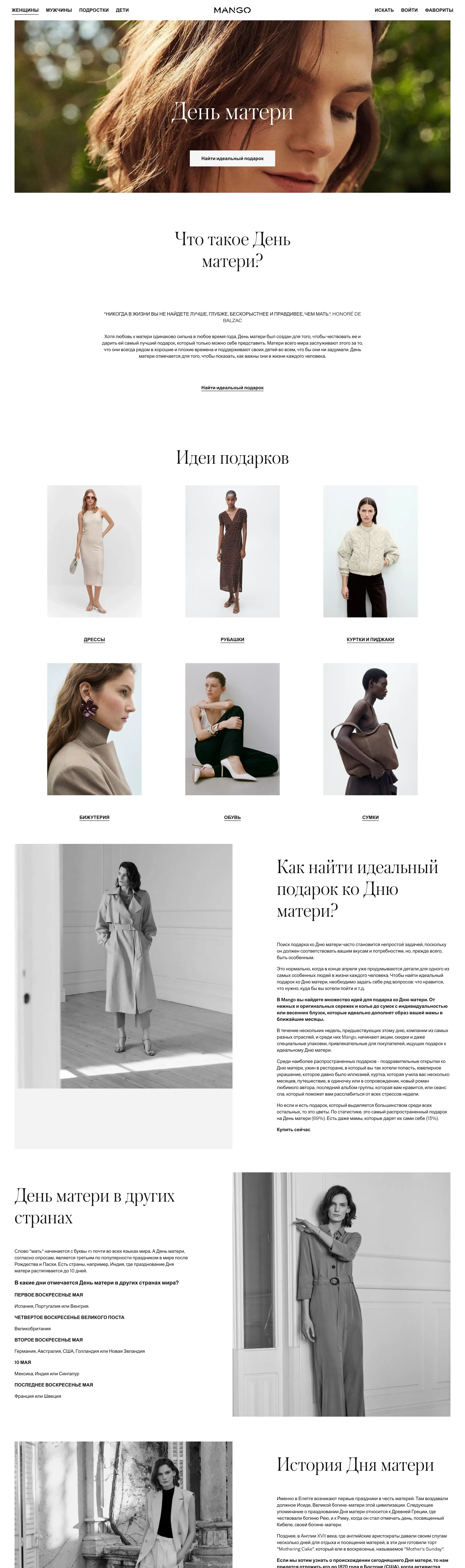 Компания предлагает широкий ассортимент одежды и аксессуаров, вдохновляясь актуальными модными тенденциями. В преддверии Дня матери они помогают найти идеальный подарок, чтобы выразить благодарность и любовь к матерям.