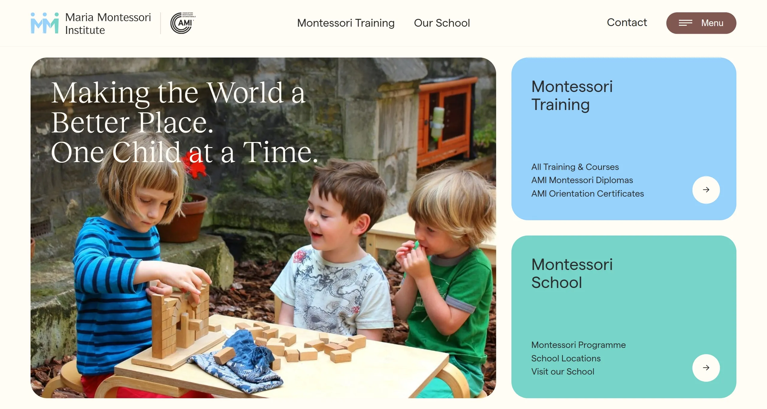 Институт предлагает аутентичное обучение по методике AMI Montessori, а также модельную школу для детей от 2½ до 16 лет и необходимые услуги поддержки.